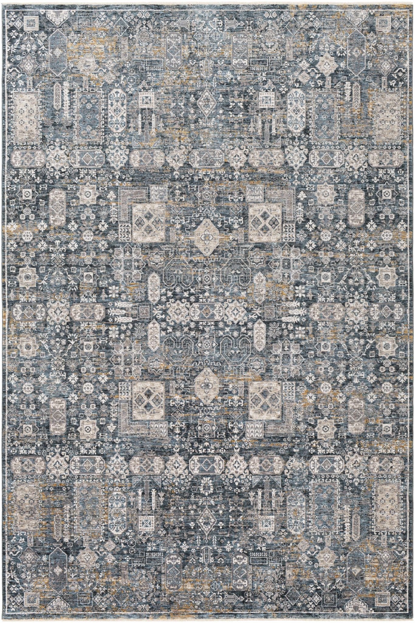 Elegant traditional area rug showcasing rich gray and charcoal hues. The classic pattern complements diverse decor styles while providing lasting durability and refined sophistication for discerning homeowners.