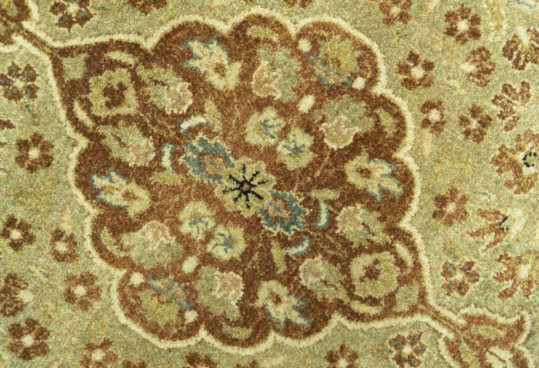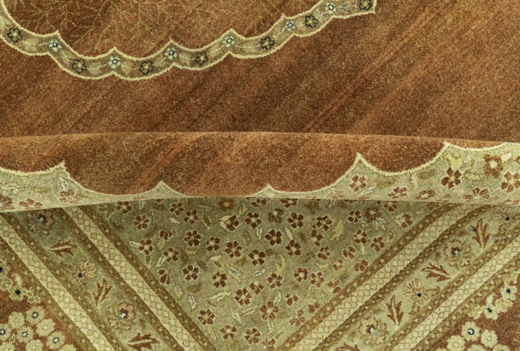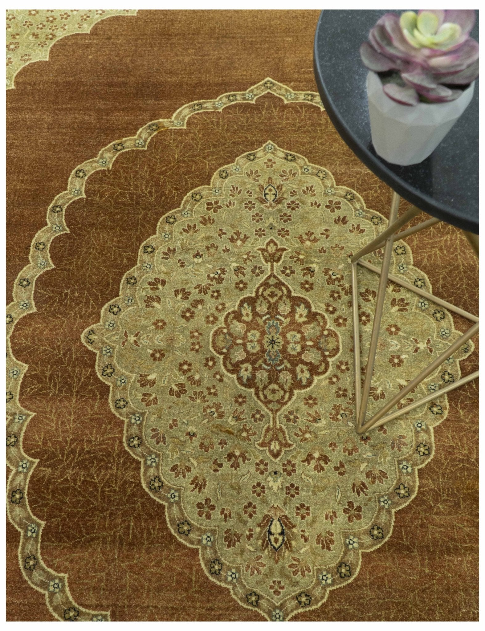 This hand-knotted Tabriz rug showcases traditional Persian artistry with sophisticated brown and beige hues. Crafted from premium wool, it delivers lasting quality and refined aesthetic appeal for discerning interiors.