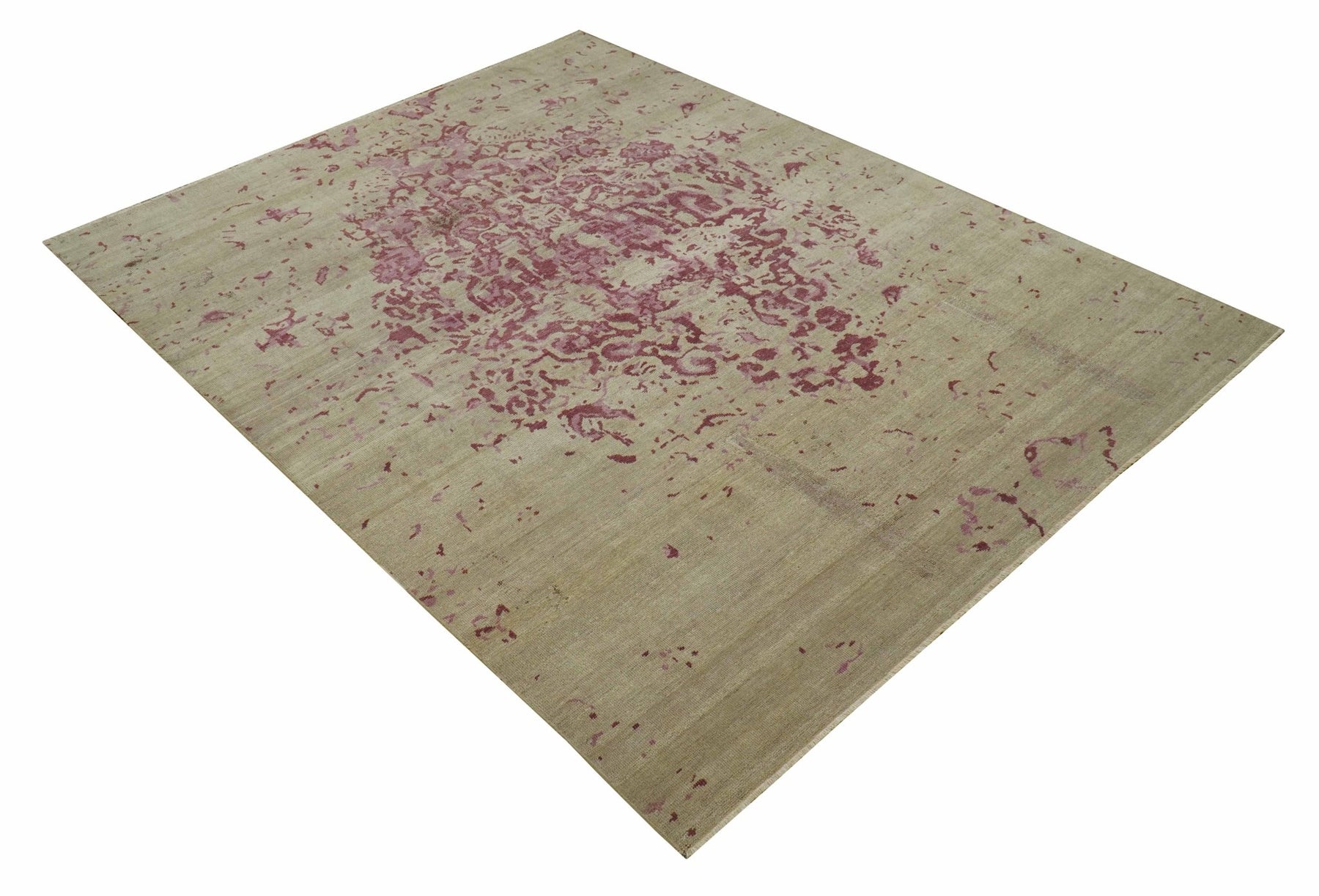 Traditional Transitional Beige And Pink Hand knotted Wool Area Rug