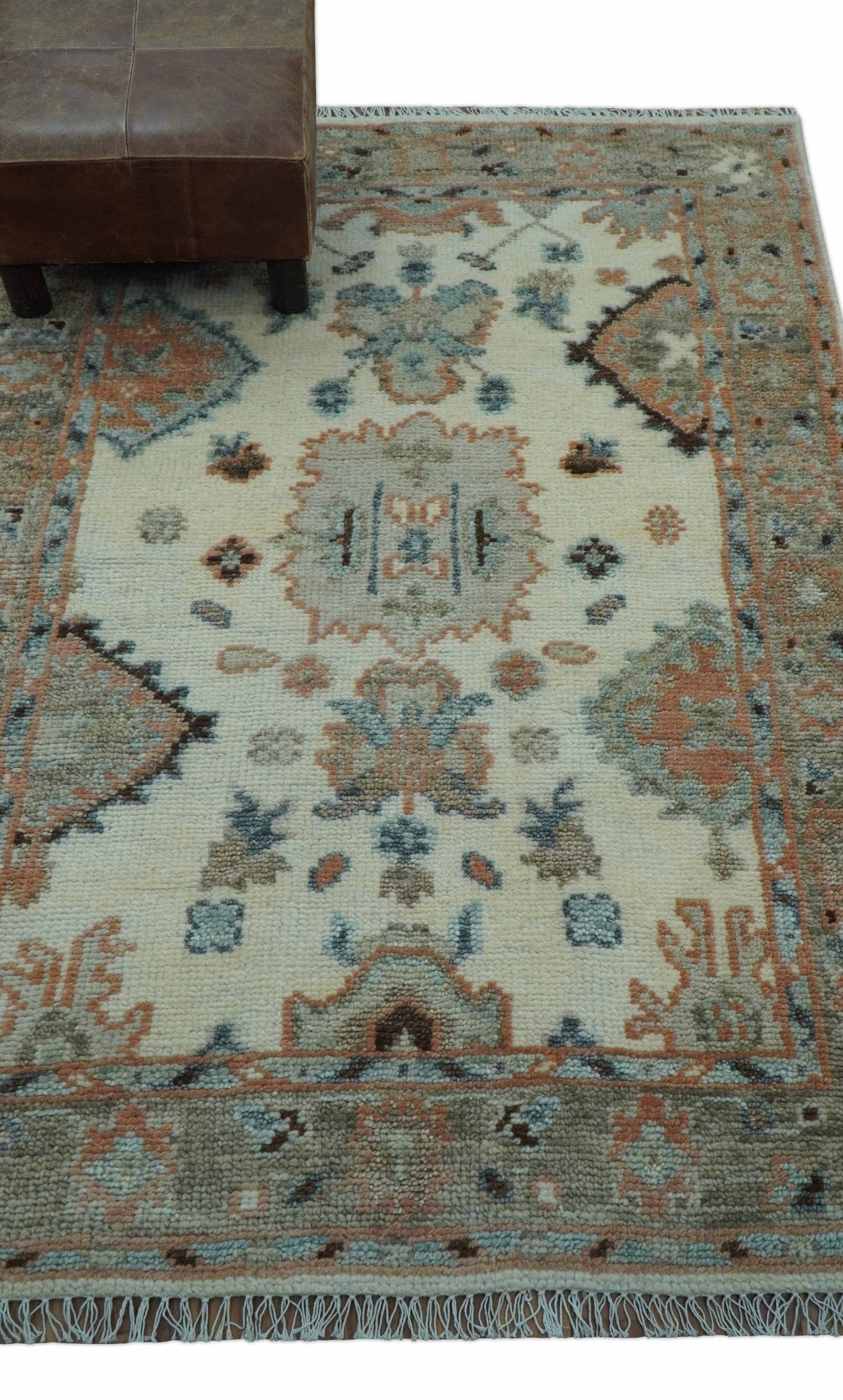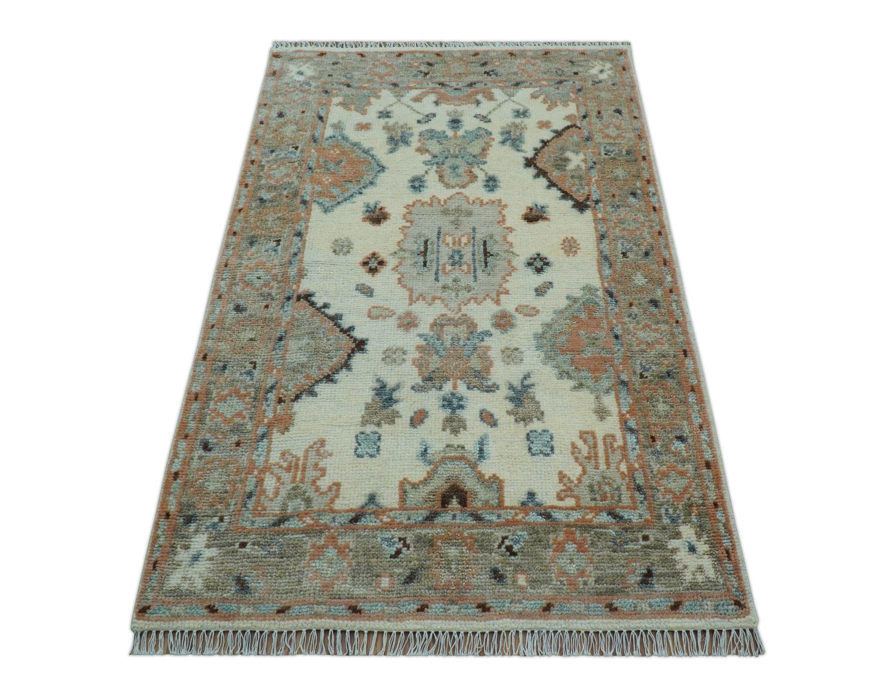 Traditional Turkish Design Beige 4x6 Hand knotted Wool Area Rug