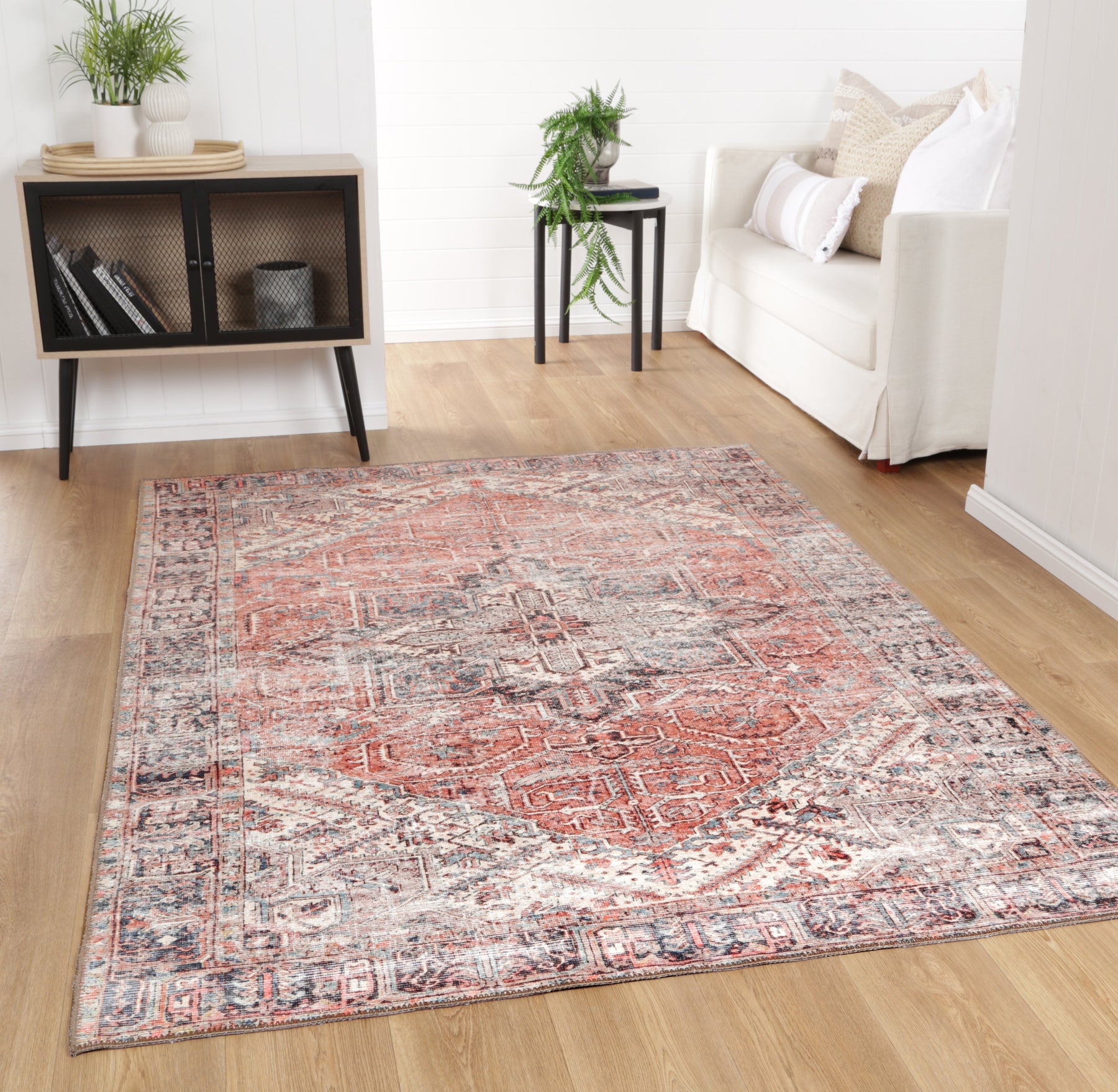 Traditional Turkish Design Machine Washable Rust And Beige Rug