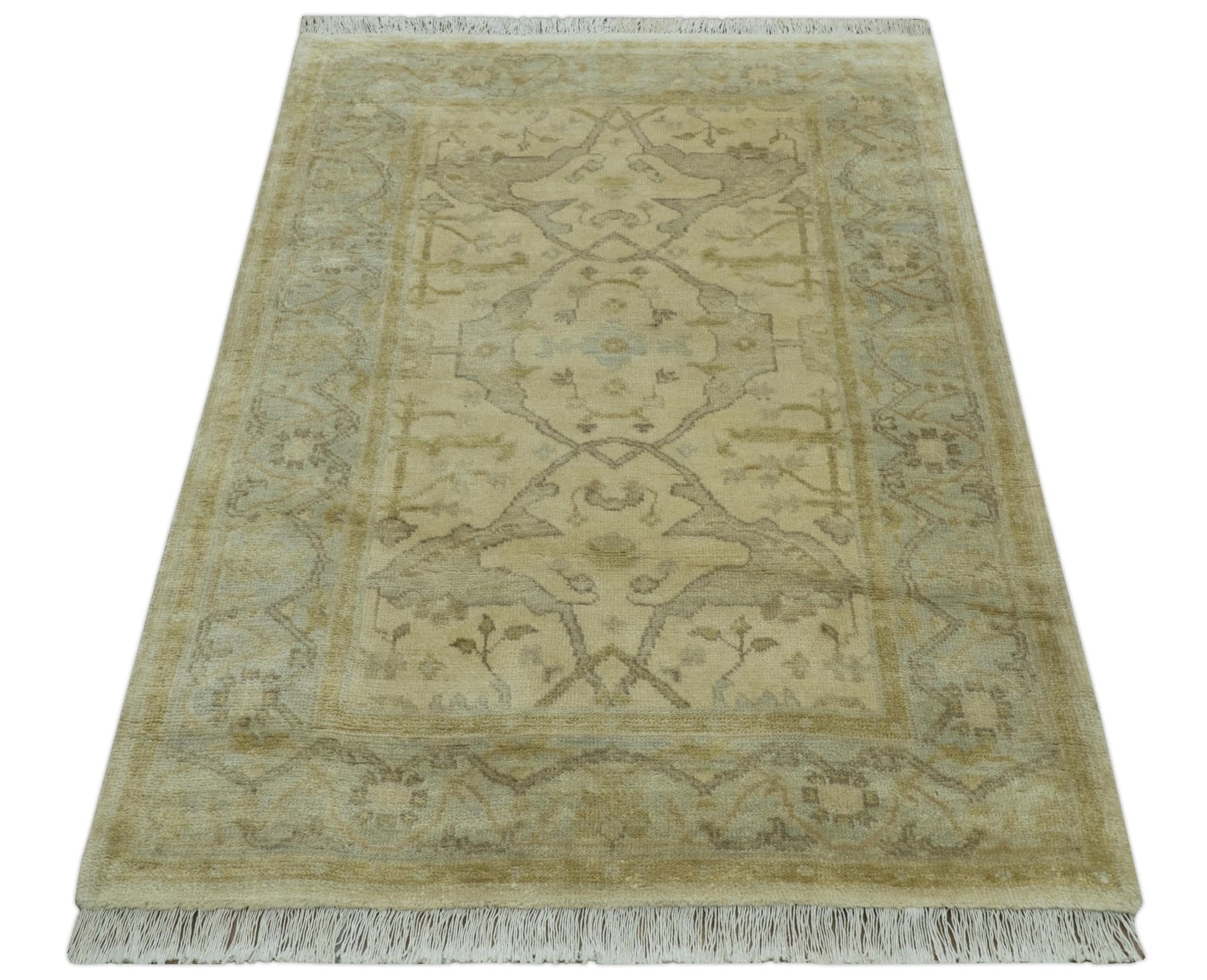 Traditional Oushak Design Beige And Gray 4x6 Hand Knotted Wool Area Rug
