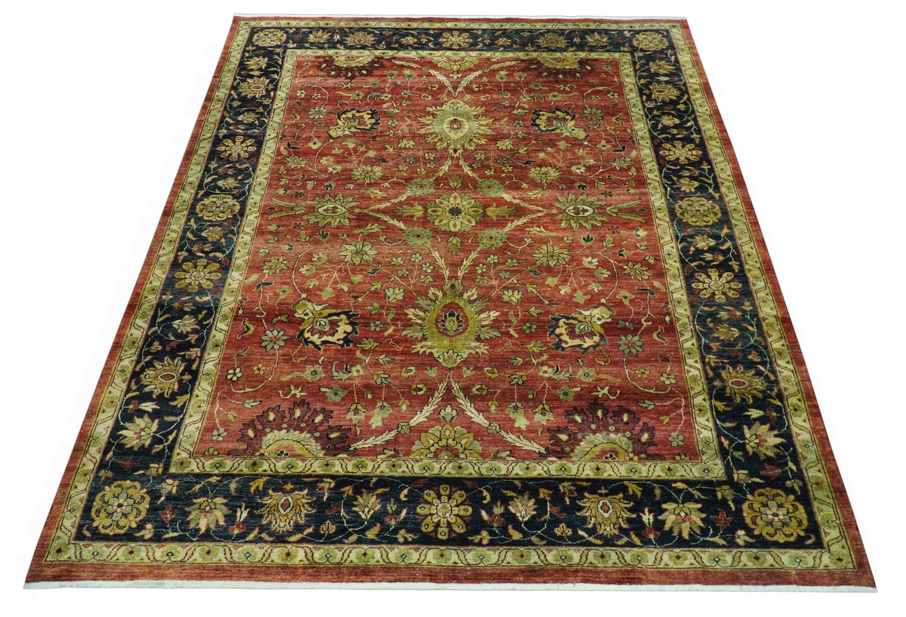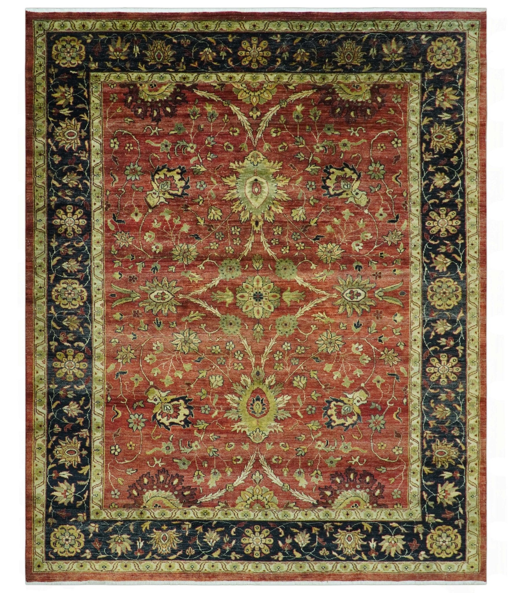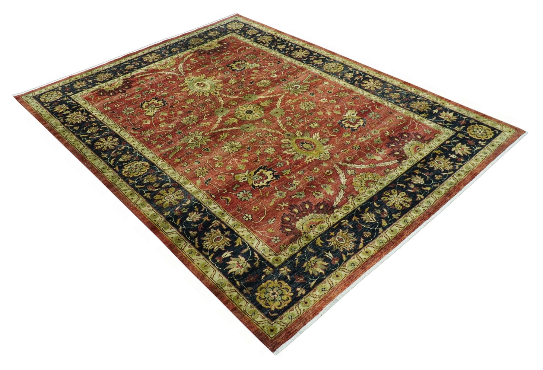 Traditional Fine Turkish design Rust And Beige 8x10 Hand Knotted Wool Area Rug