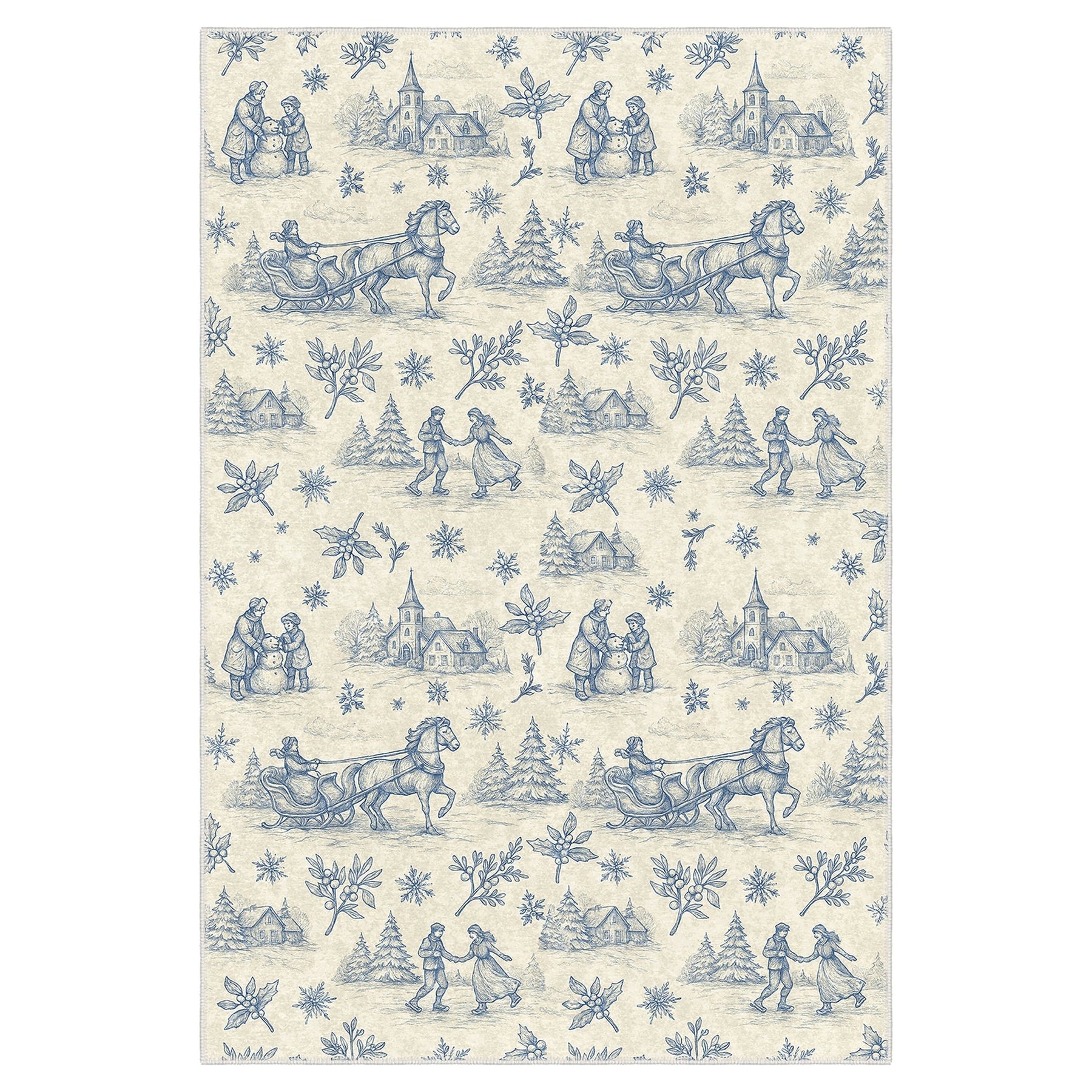 Zavora Christmas Beige Machine Washable Cotton Area Rug