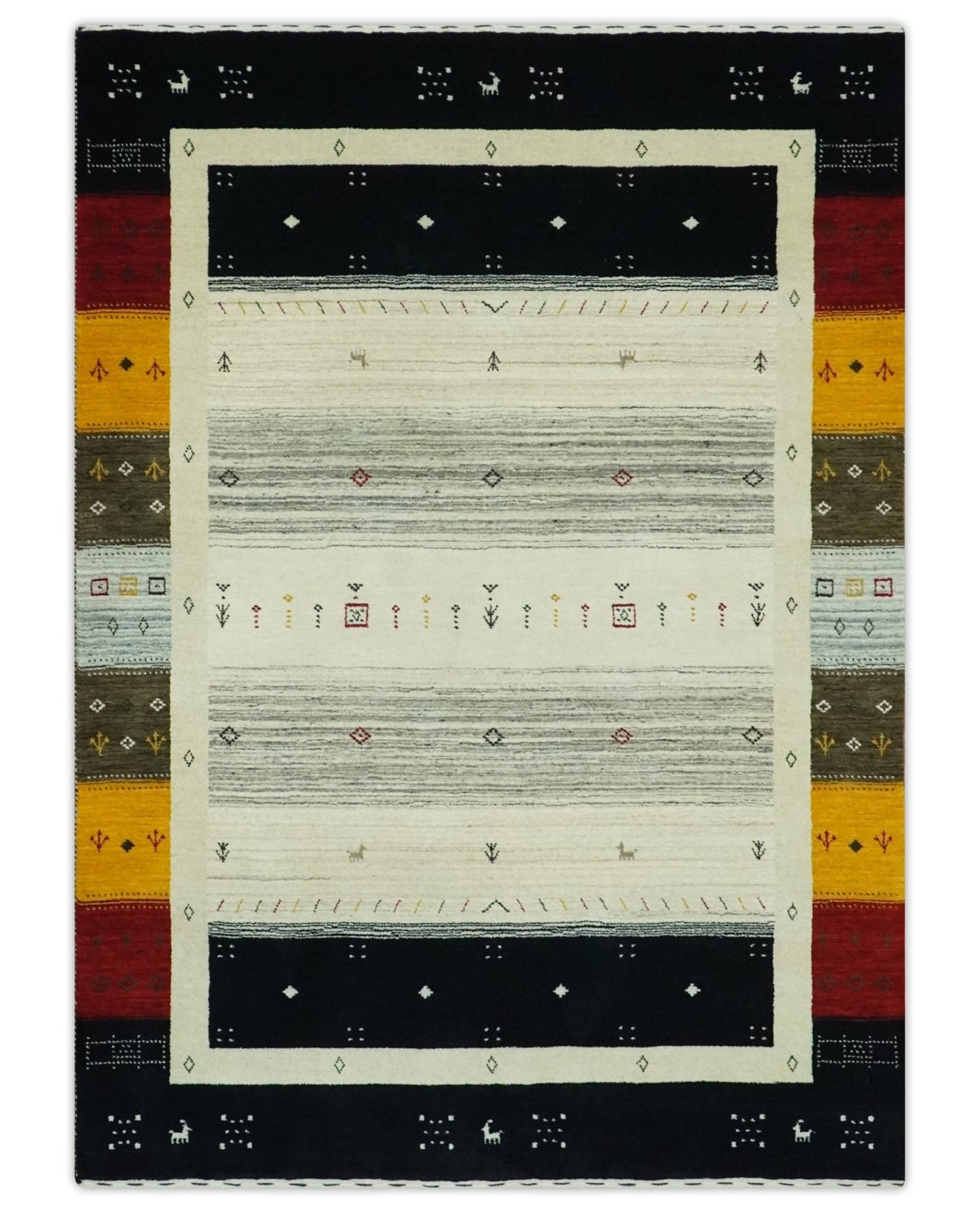 Solid Plain Beige and Charcoal Hand loom Multi size wool area Rug