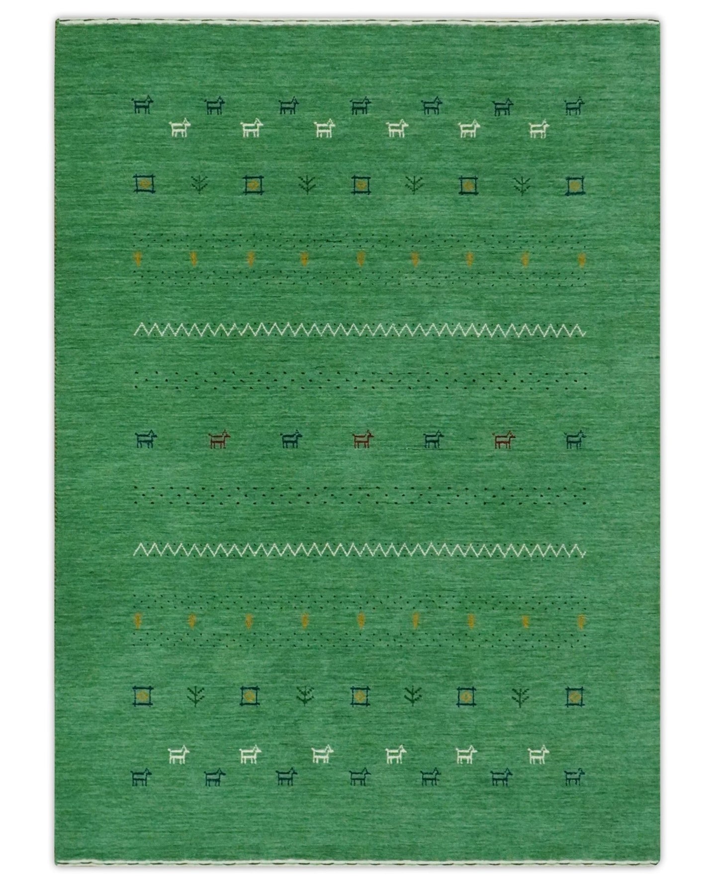 Tribal Design Green Custom Made Traditional Hand loom Wool Area Rug