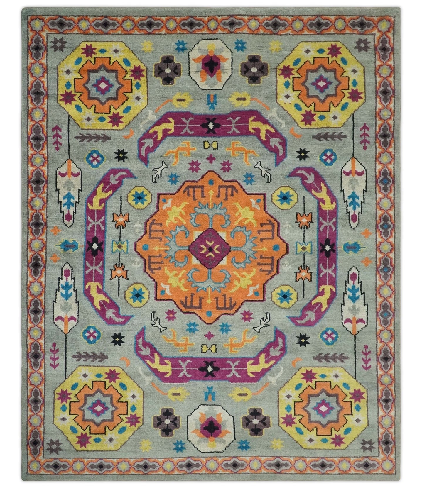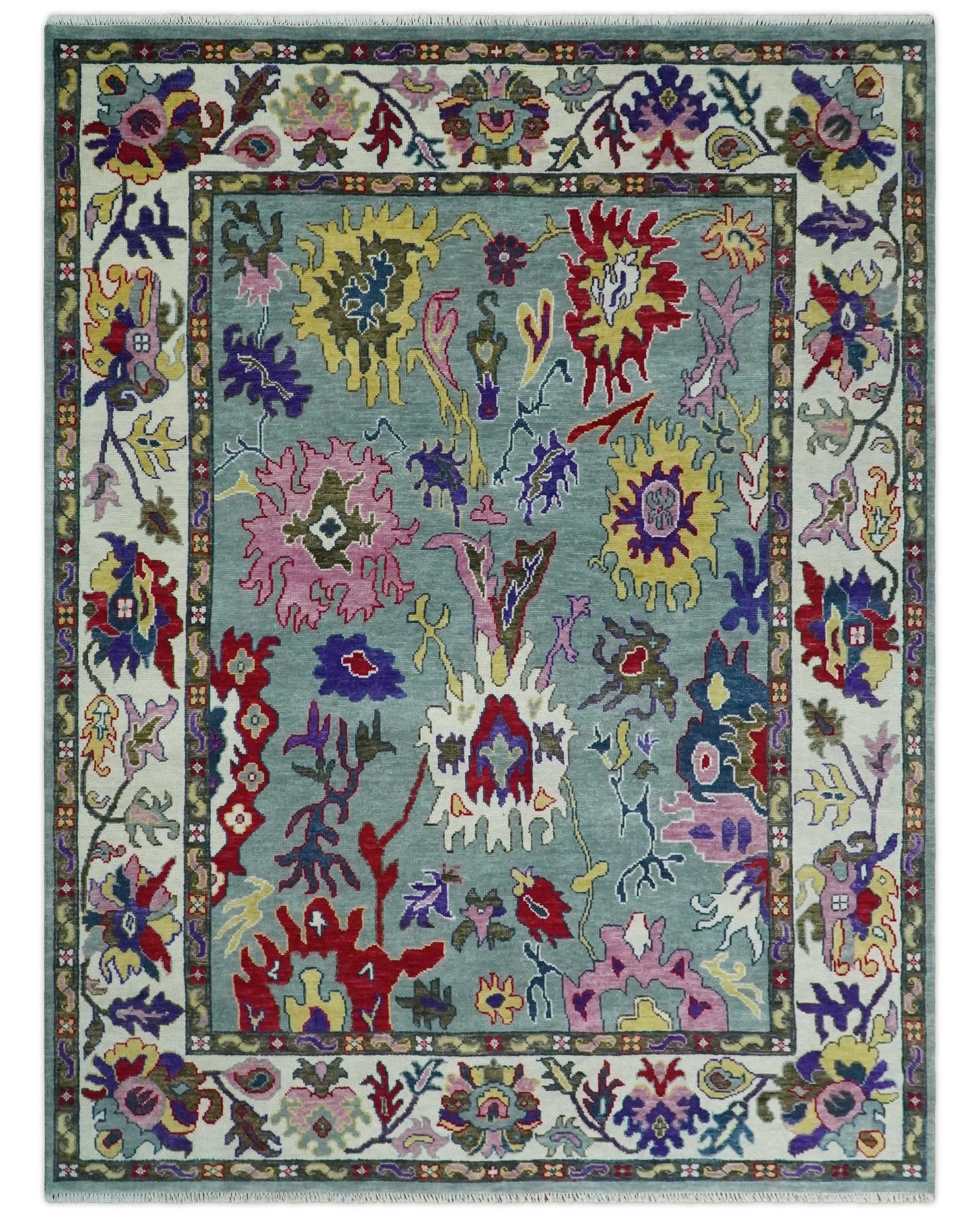 Custom Made Aqua and Green Hand knotted Traditional Oushak wool area Rug
