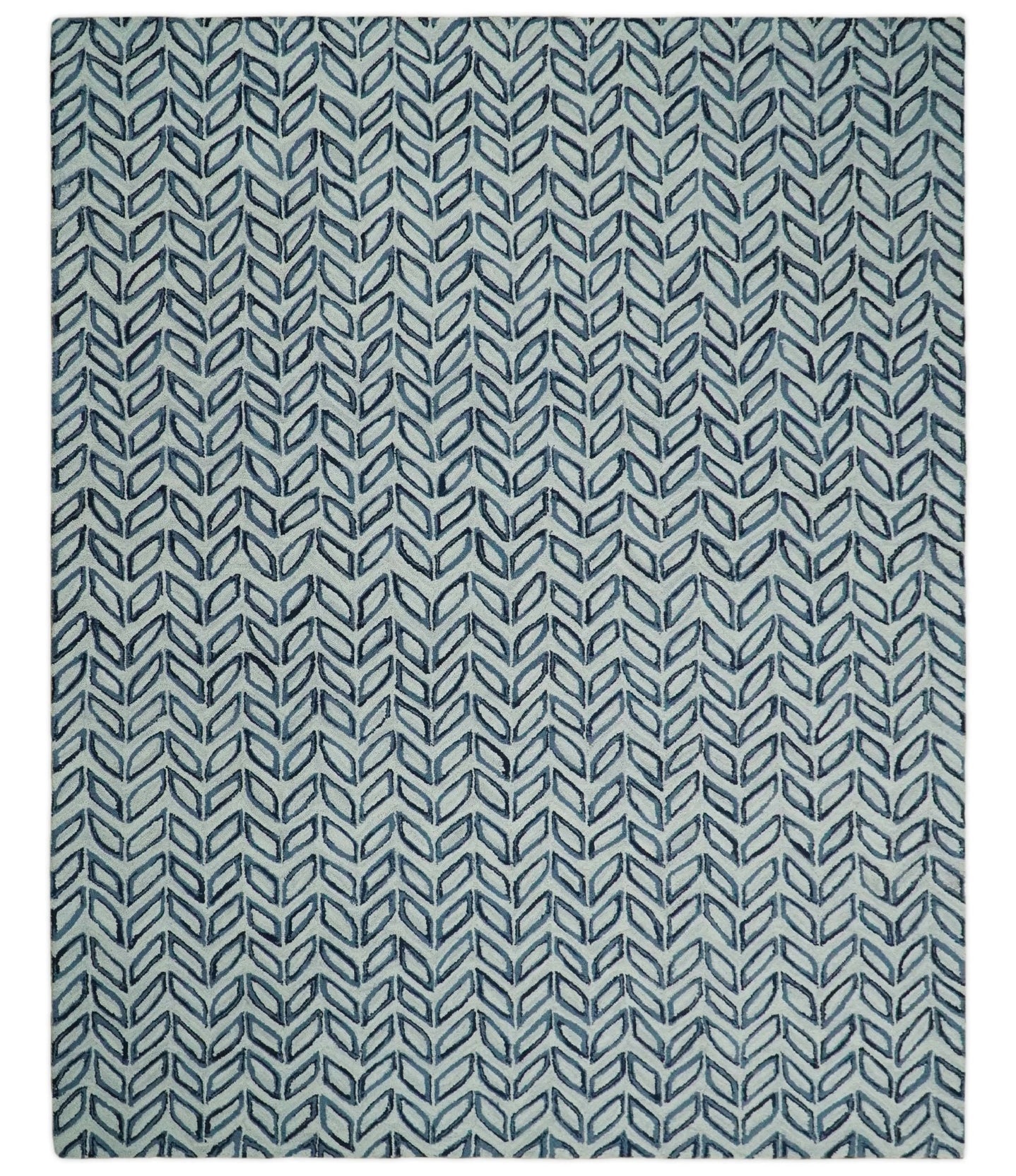 Custom Made Blue and Ivory Stripes Design Hand loom wool Area Rug
