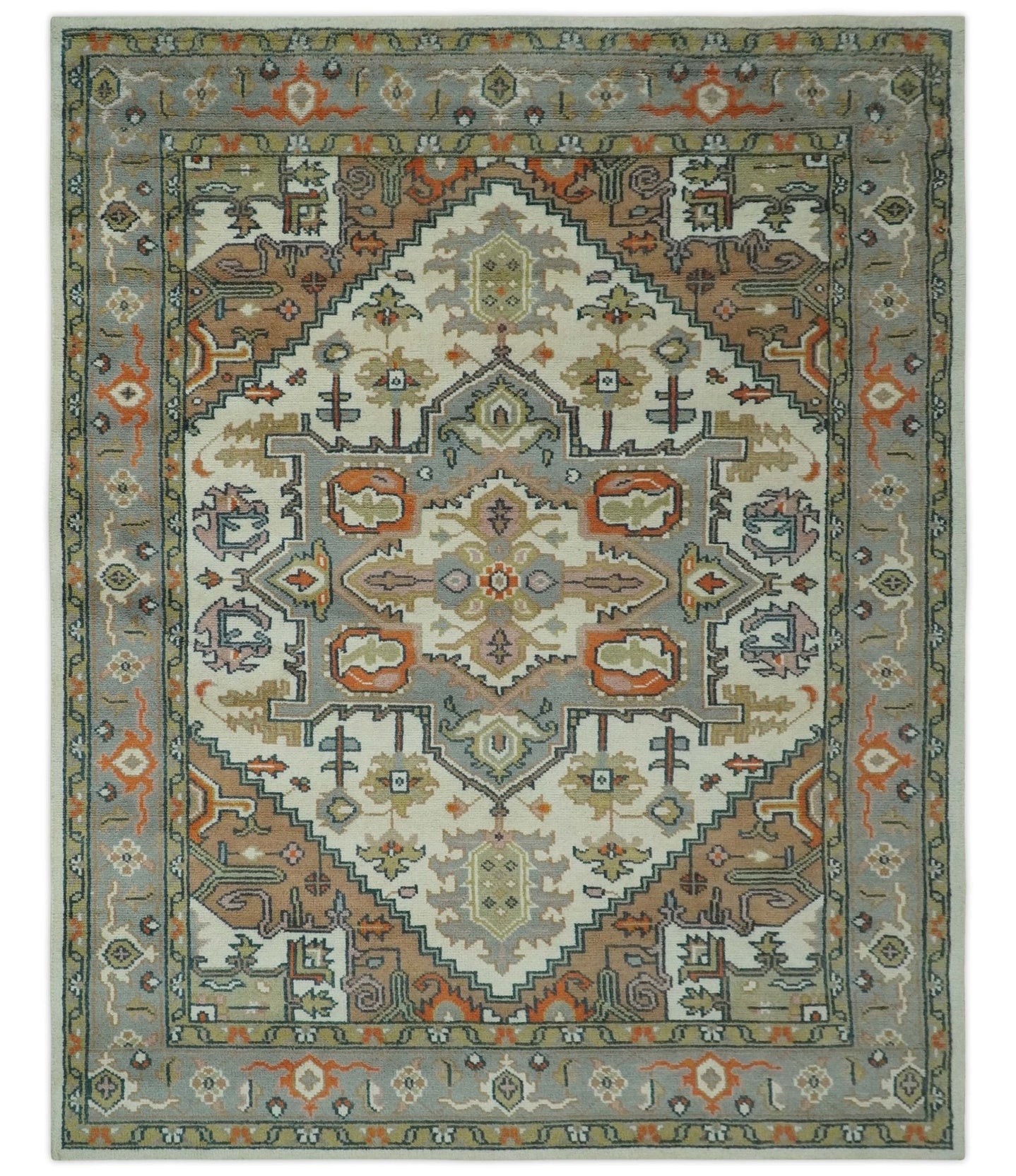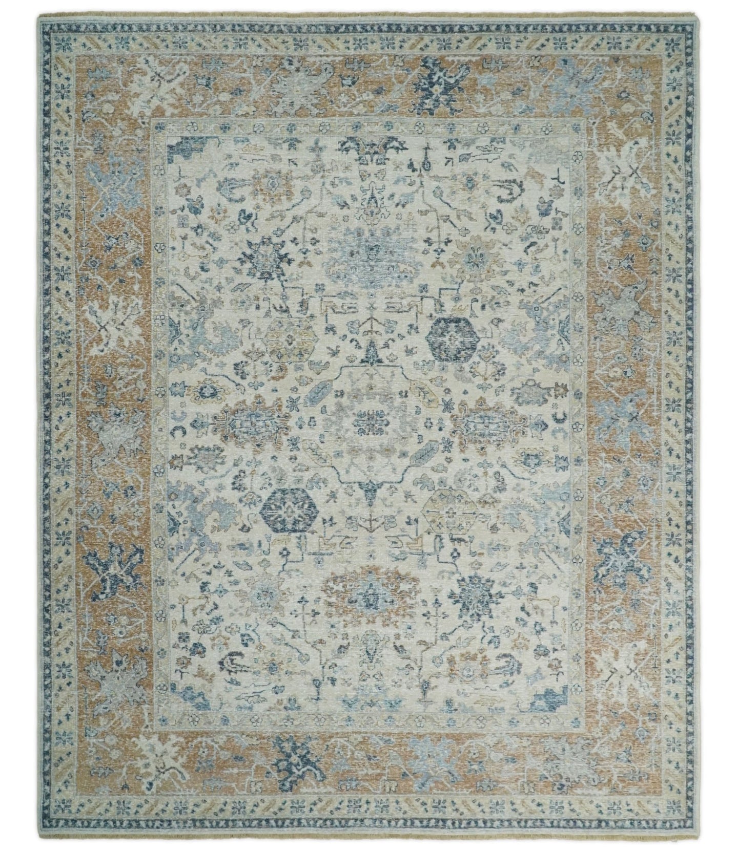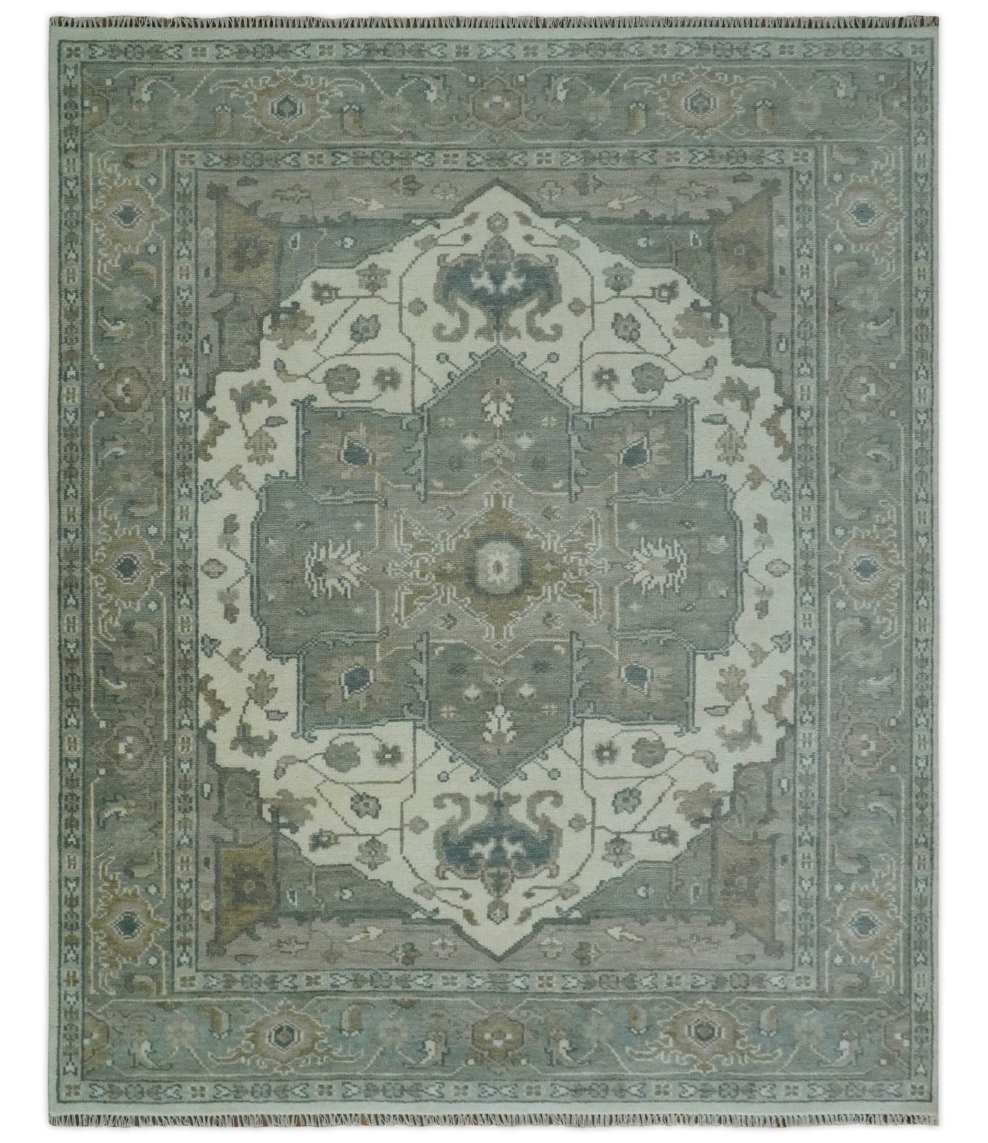 Custom Made Beige and Olive Hand Knotted Traditional wool area rug