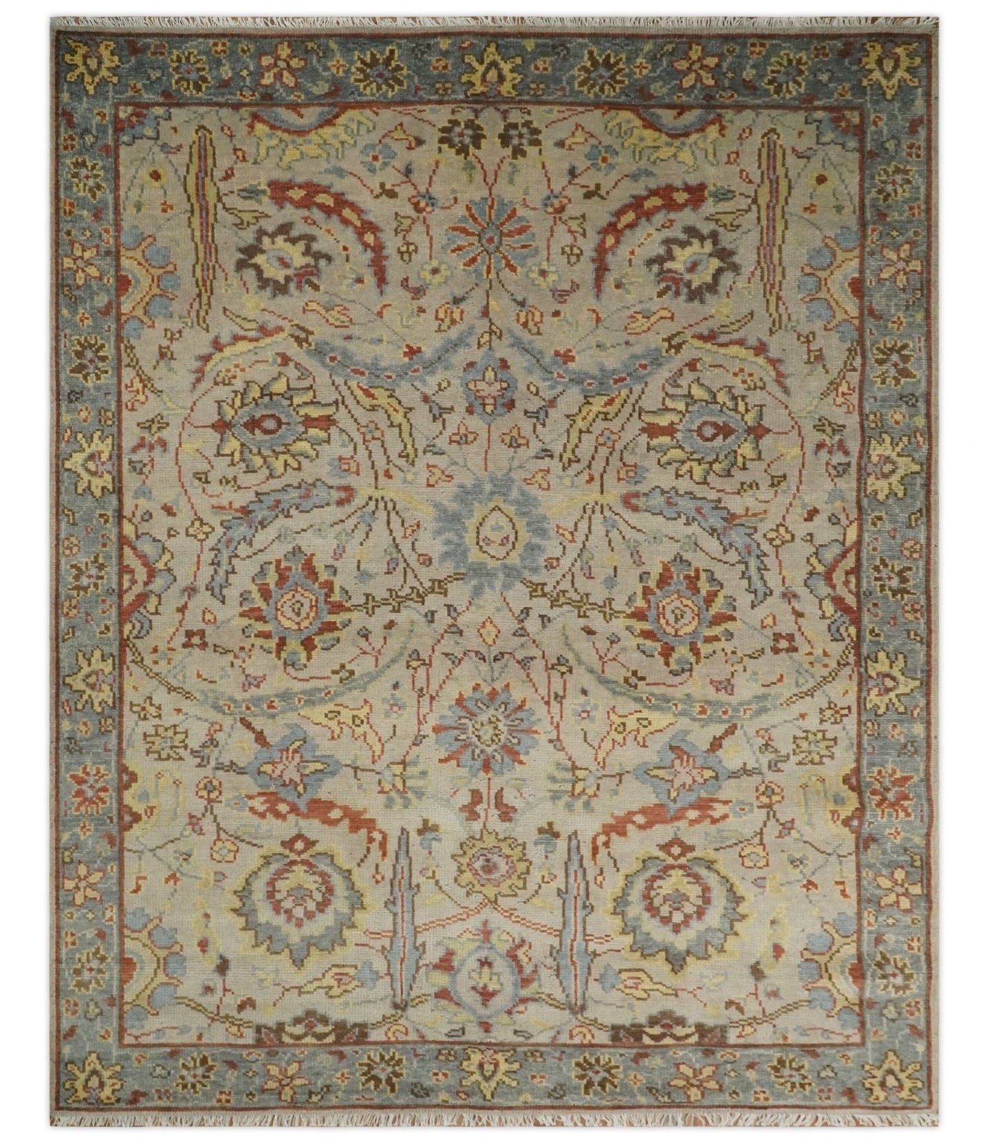 Hand Knotted Ivory, and Shades of Gray Traditional Custom made wool rug