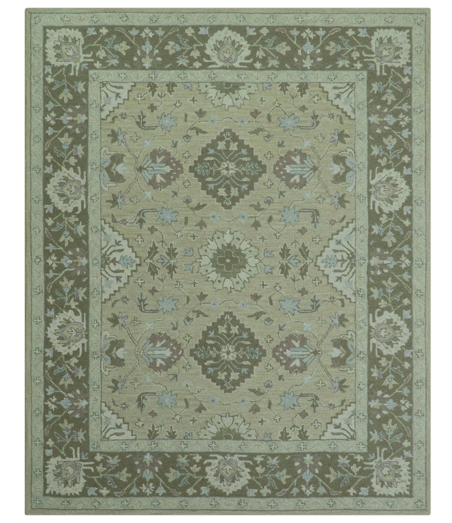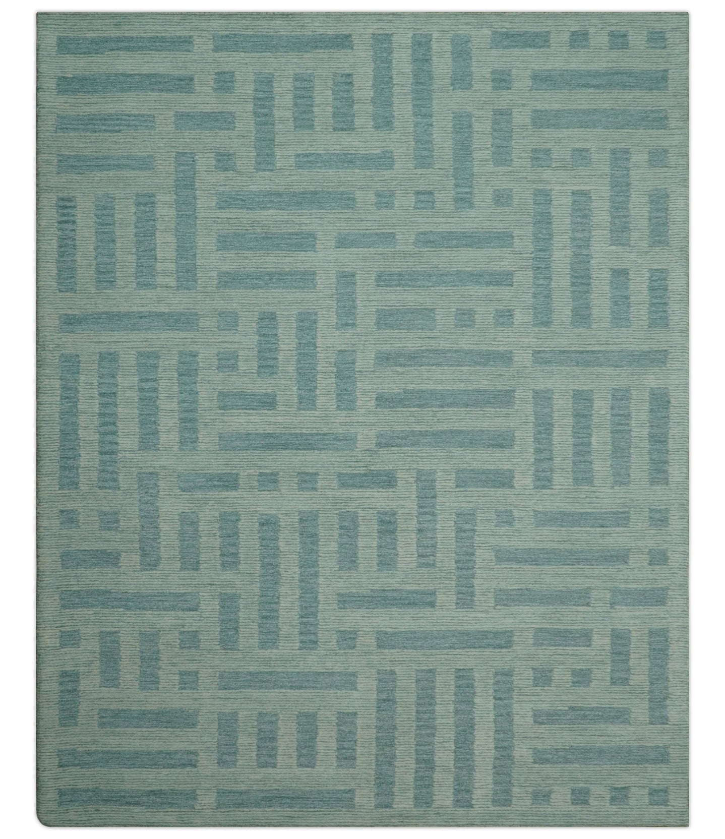 Solid Green Hand knotted Contemporary Custom Made wool Area Rug