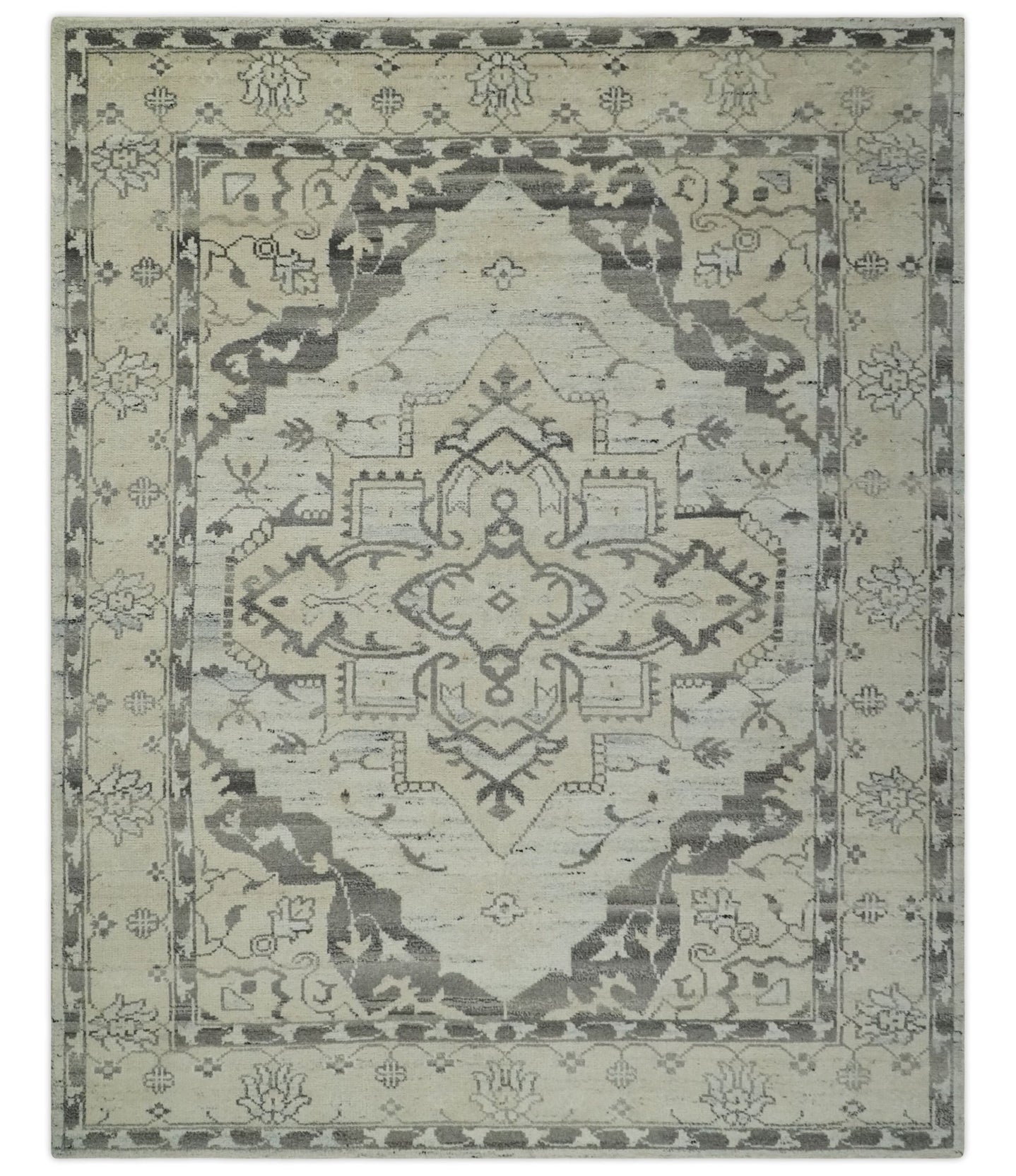 Hand knotted Gray and Beige Traditional Oushak Wool Area Rug