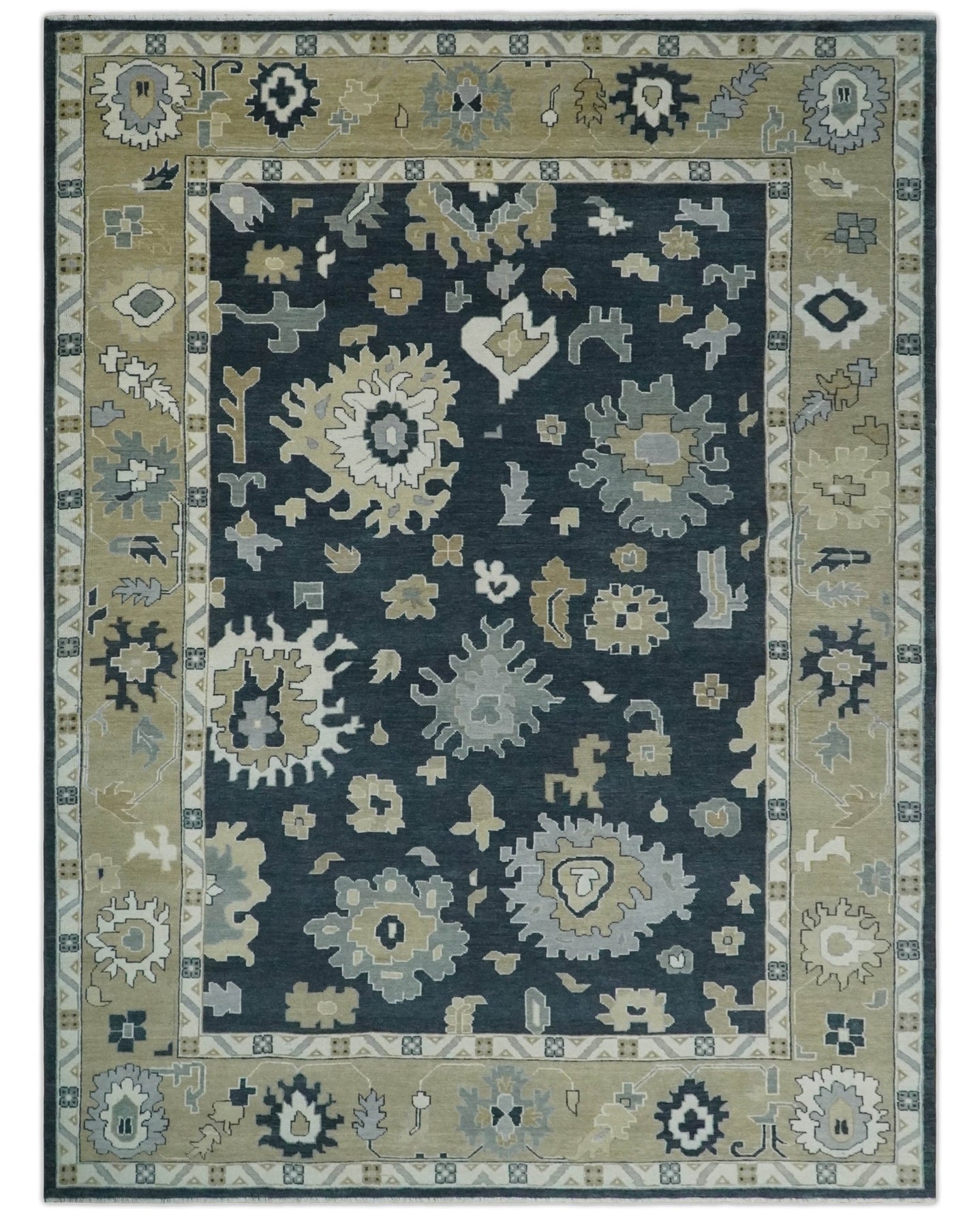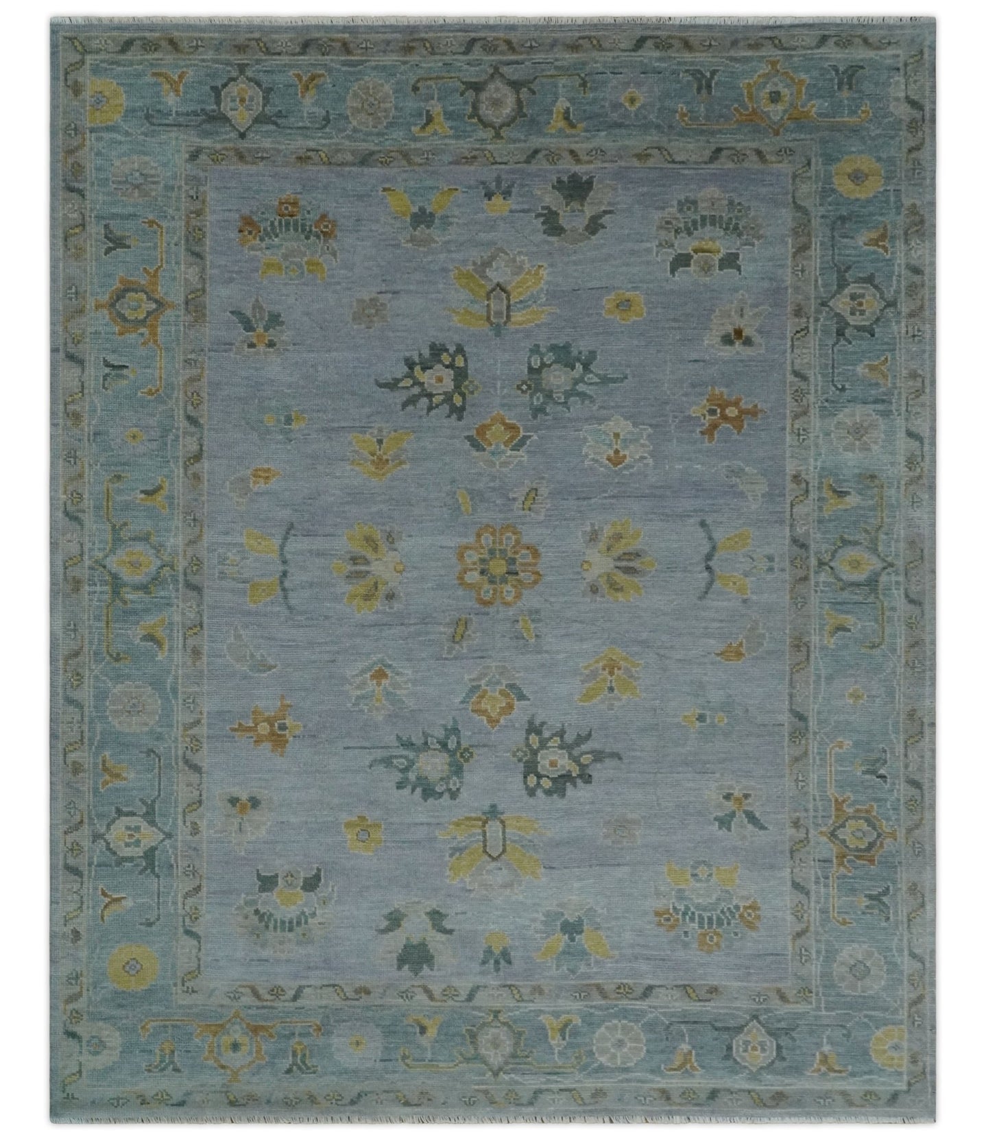 Multi Size Charcoal, Aqua and Silver Hand Knotted Oushak Wool Area Rug
