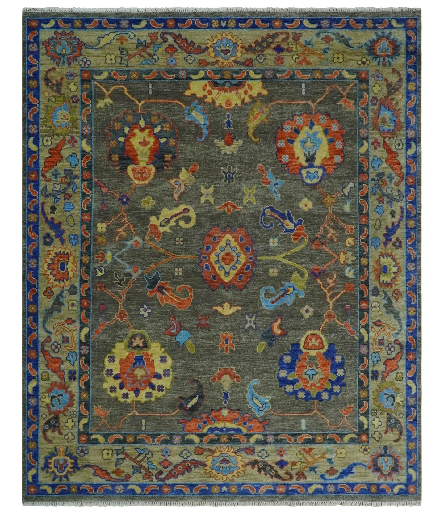 Hand Knotted Oriental Oushak Green and Gray Multi Size Wool Area Rug