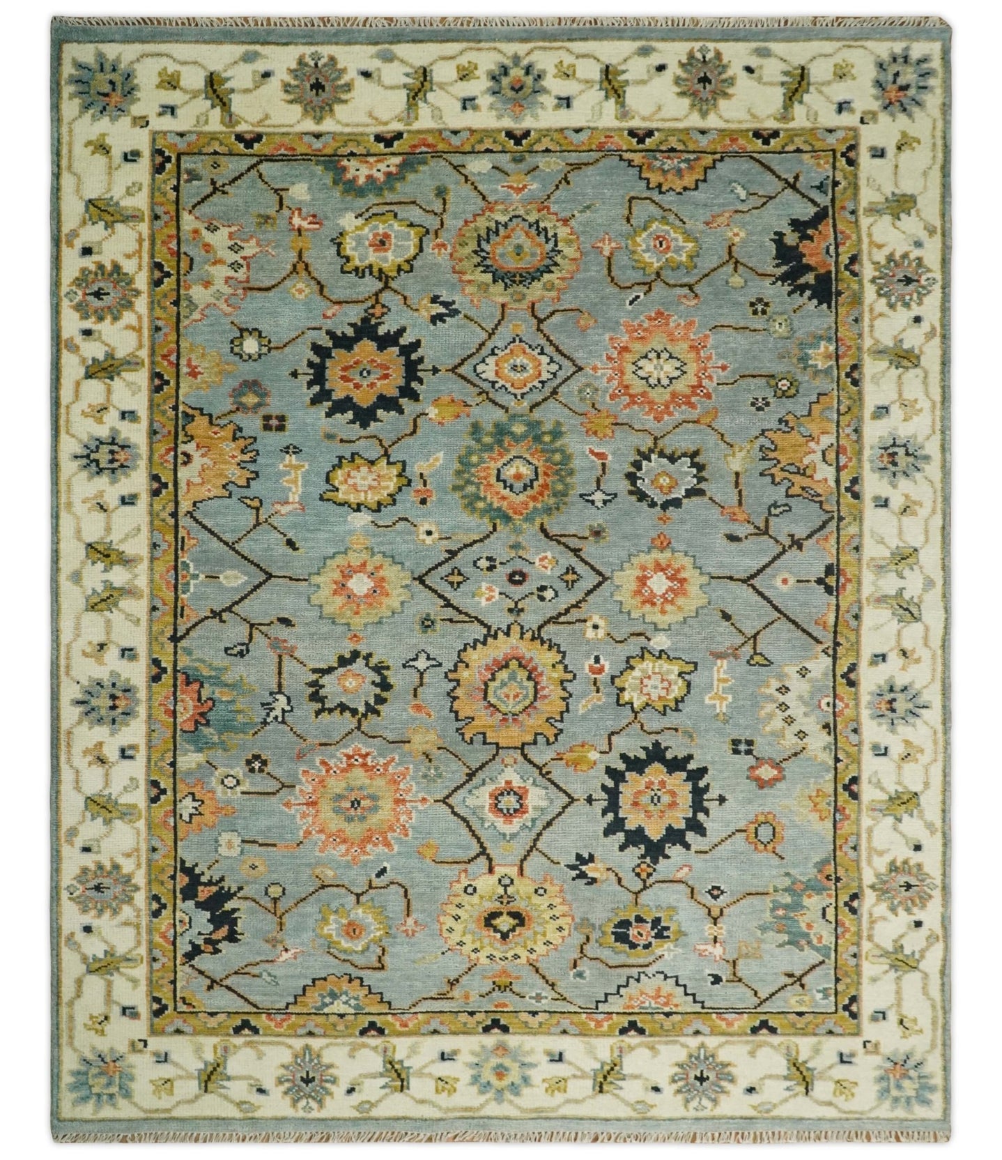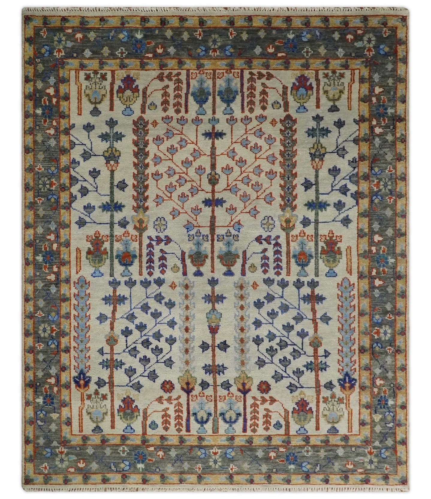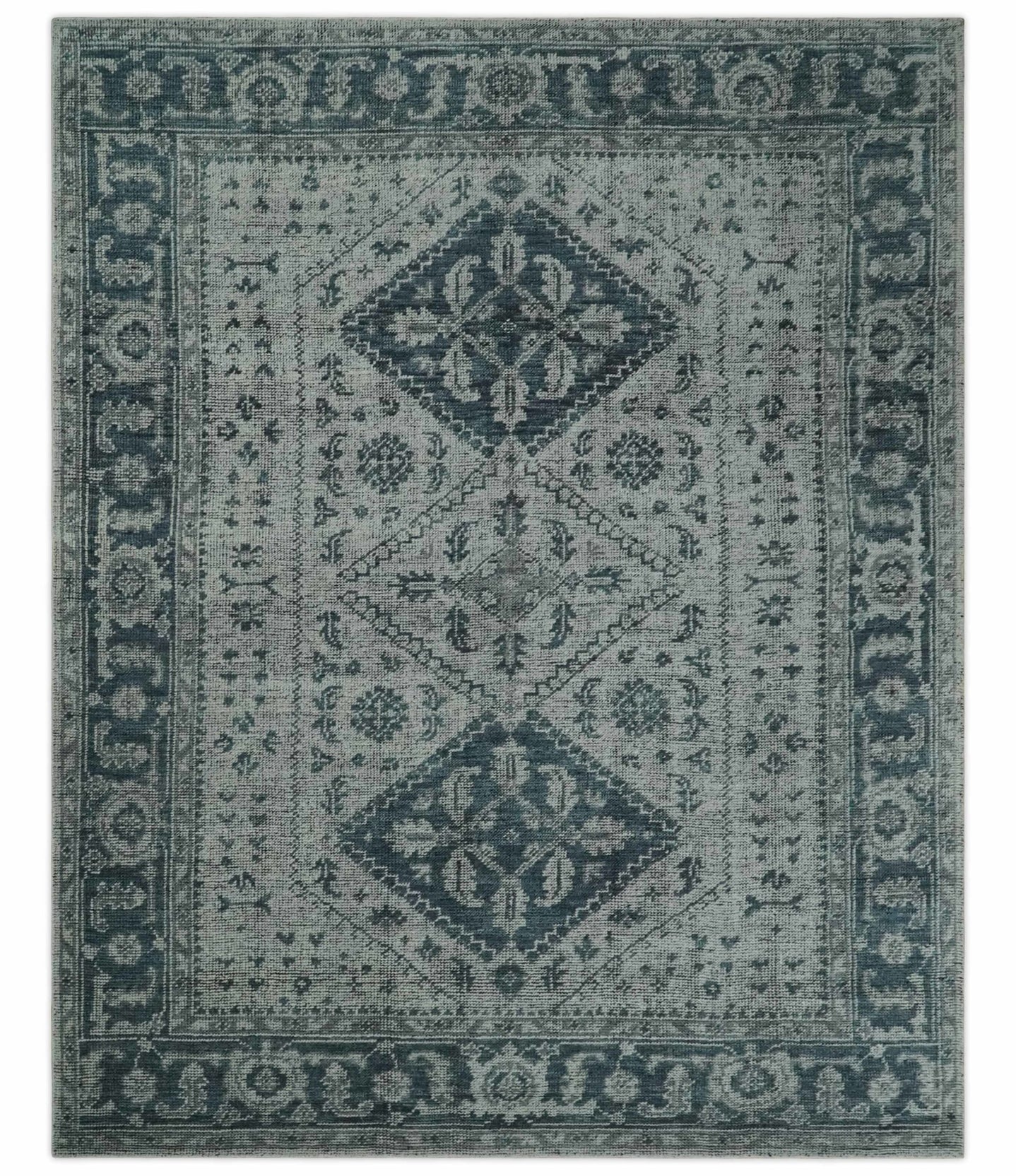 Hand Knotted Custom Made Olive, Silver and Beige Traditional Wool Rug