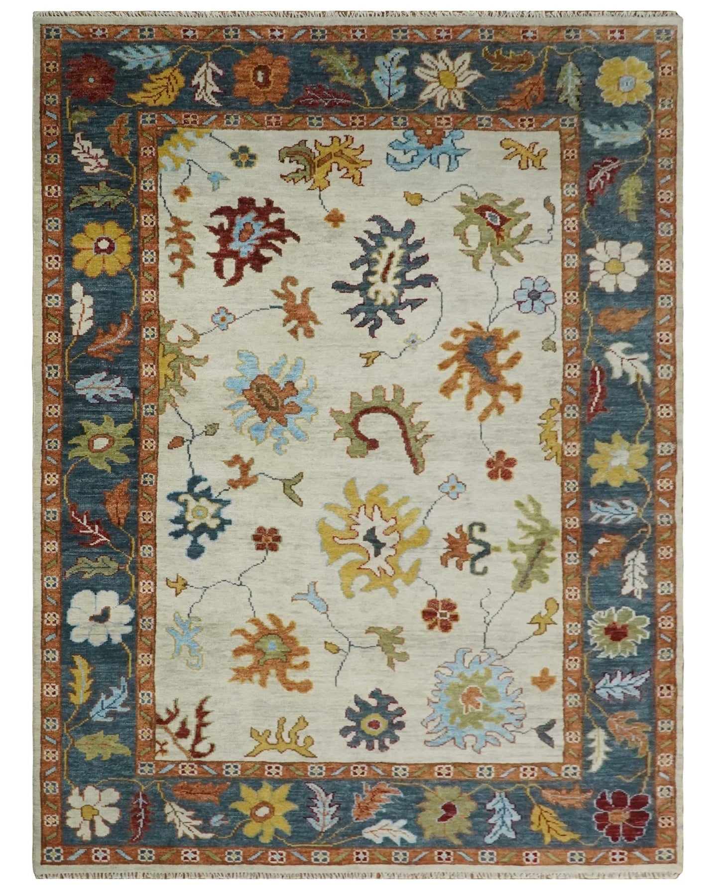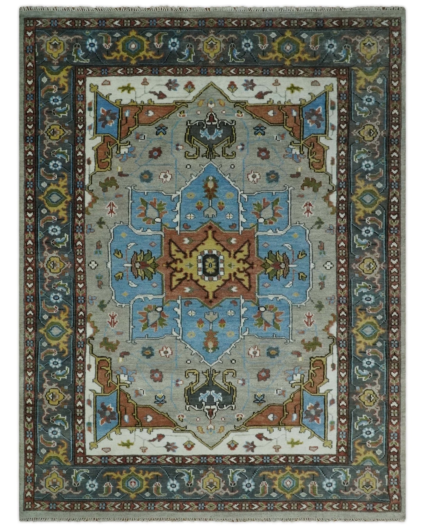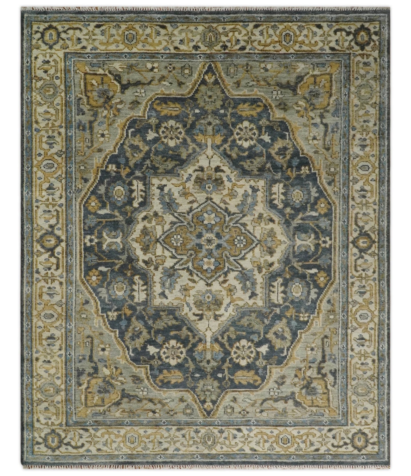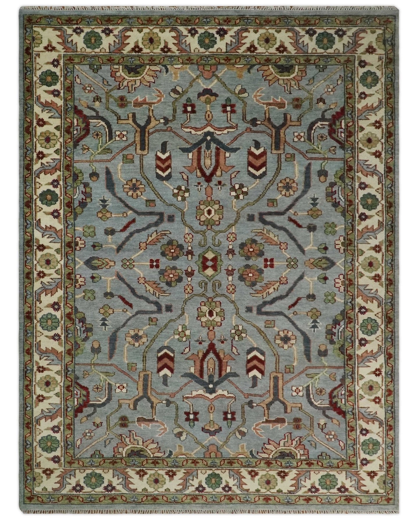Hand Knotted Custom Made Olive, Silver and Beige Traditional Wool Rug