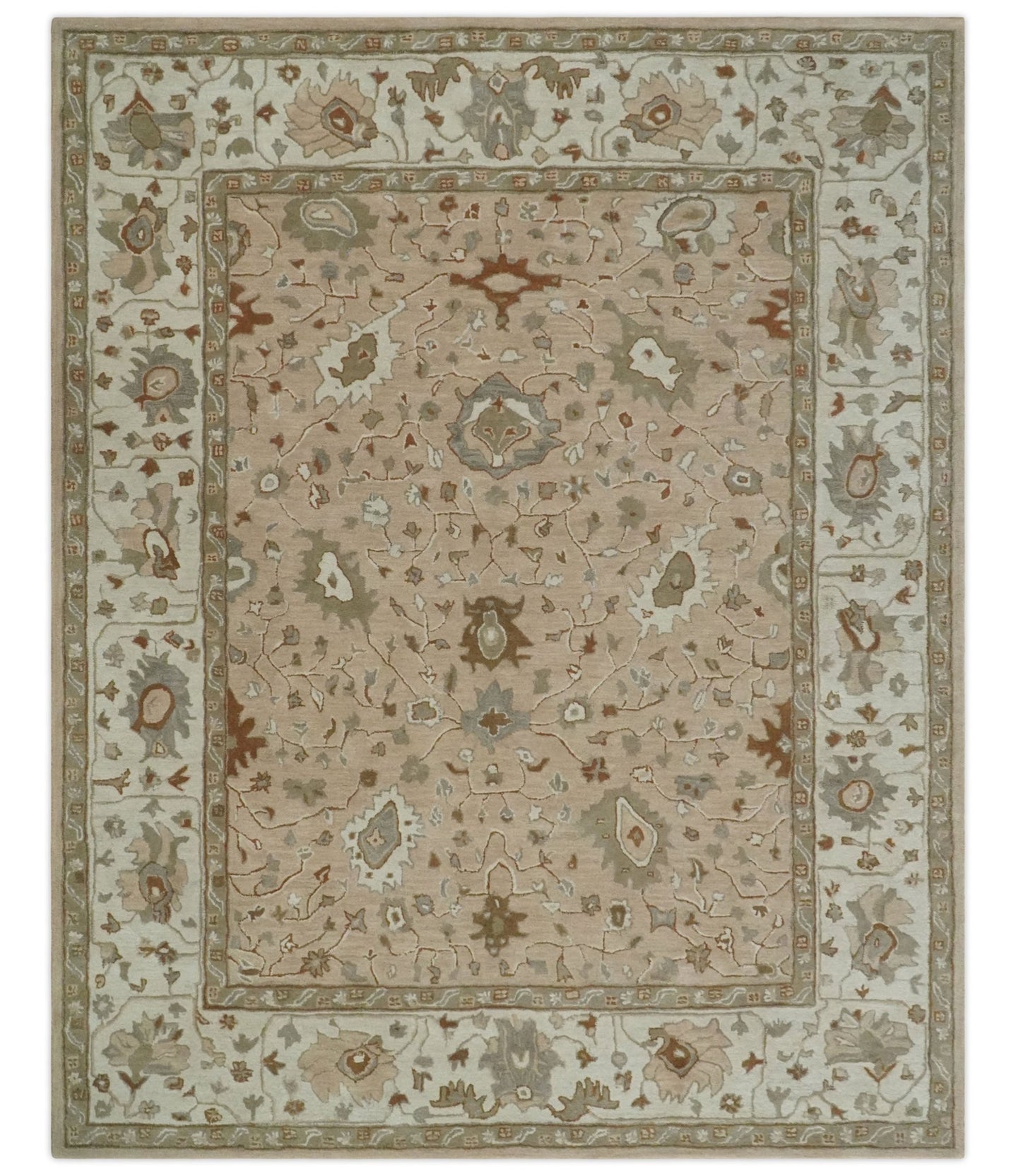Custom Made Oushak Design Tufted Peach, Ivory and Olive Traditional Rug