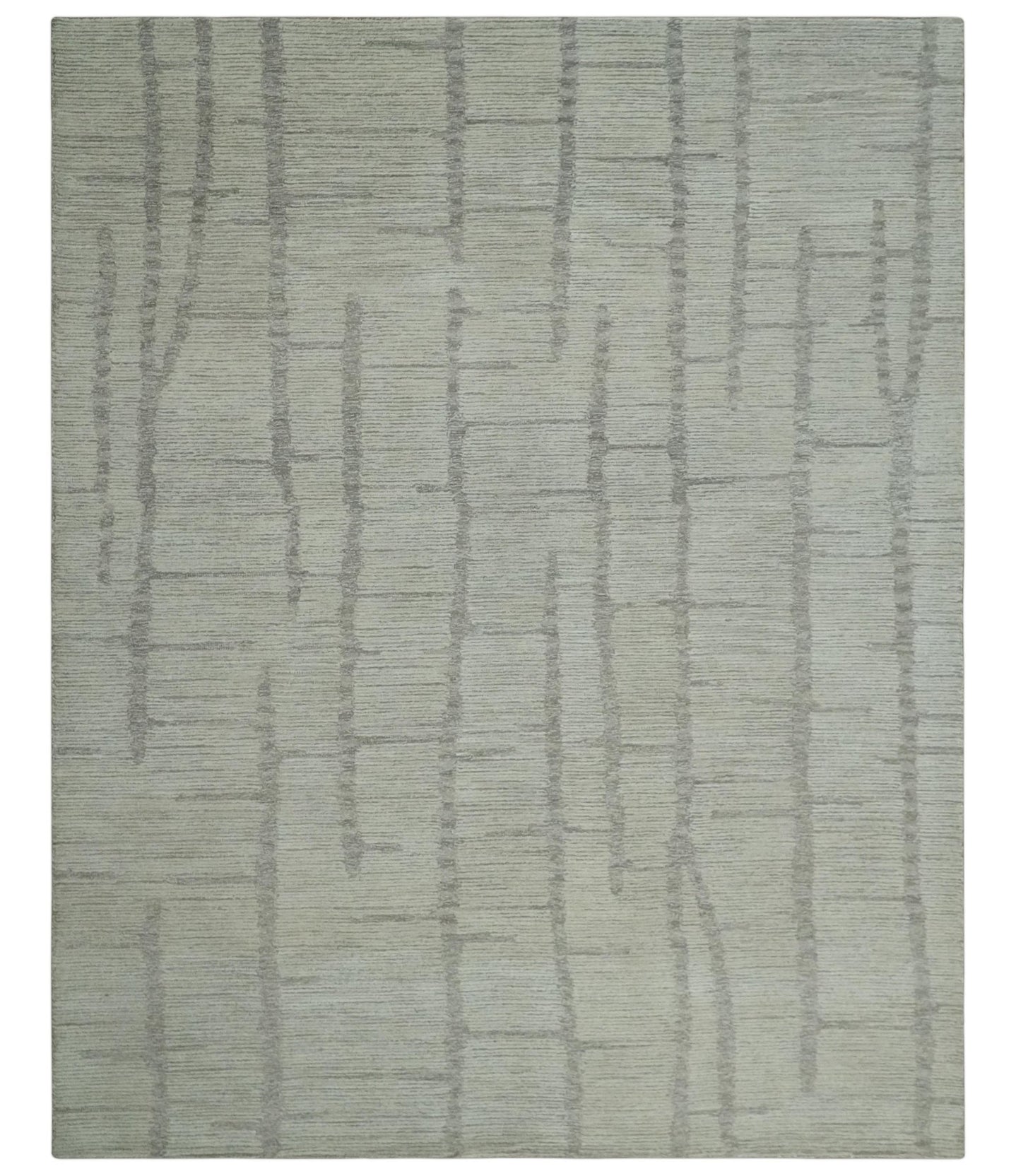 Hand Tufted Ivory, Silver and Blue Modern Abstract Custom Made wool Rug