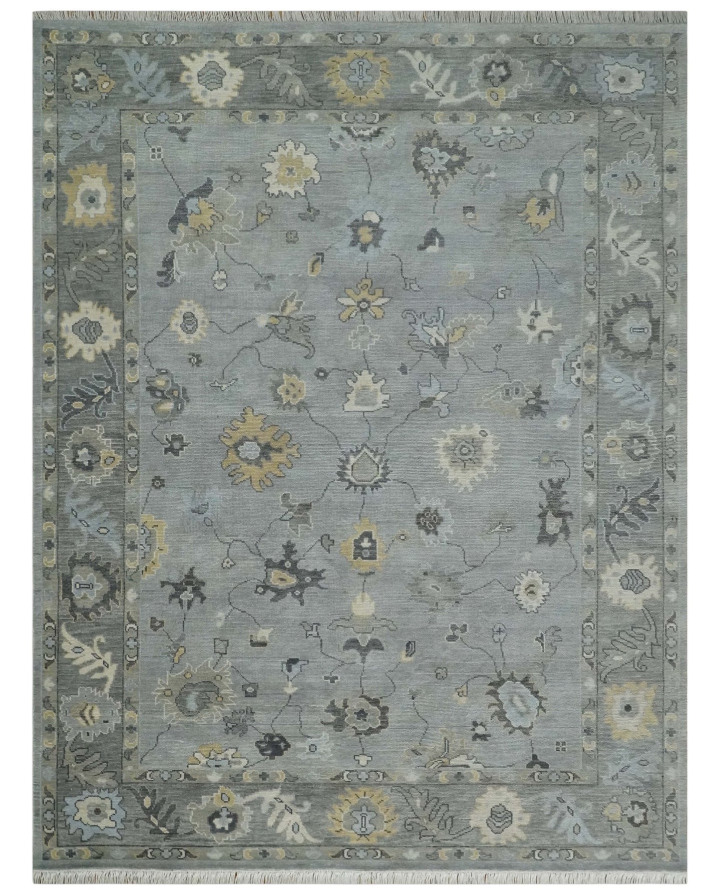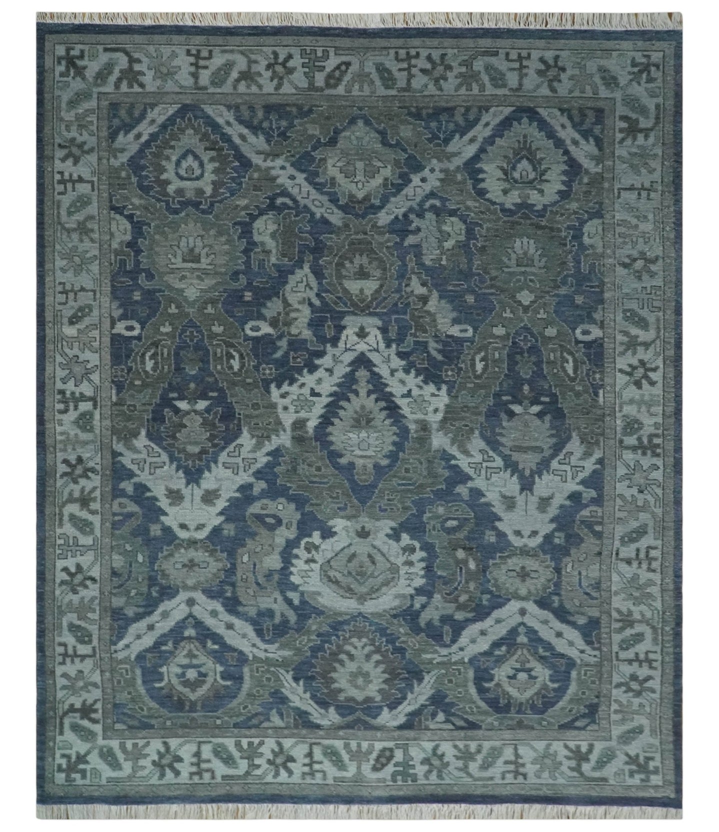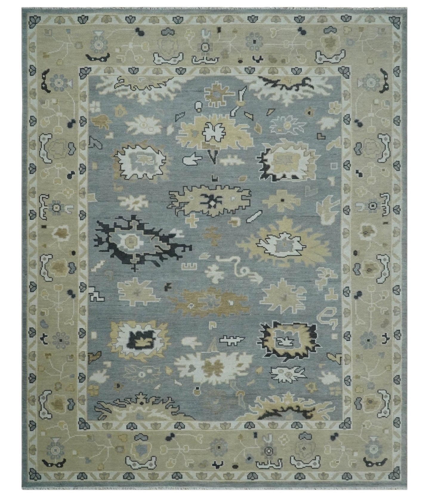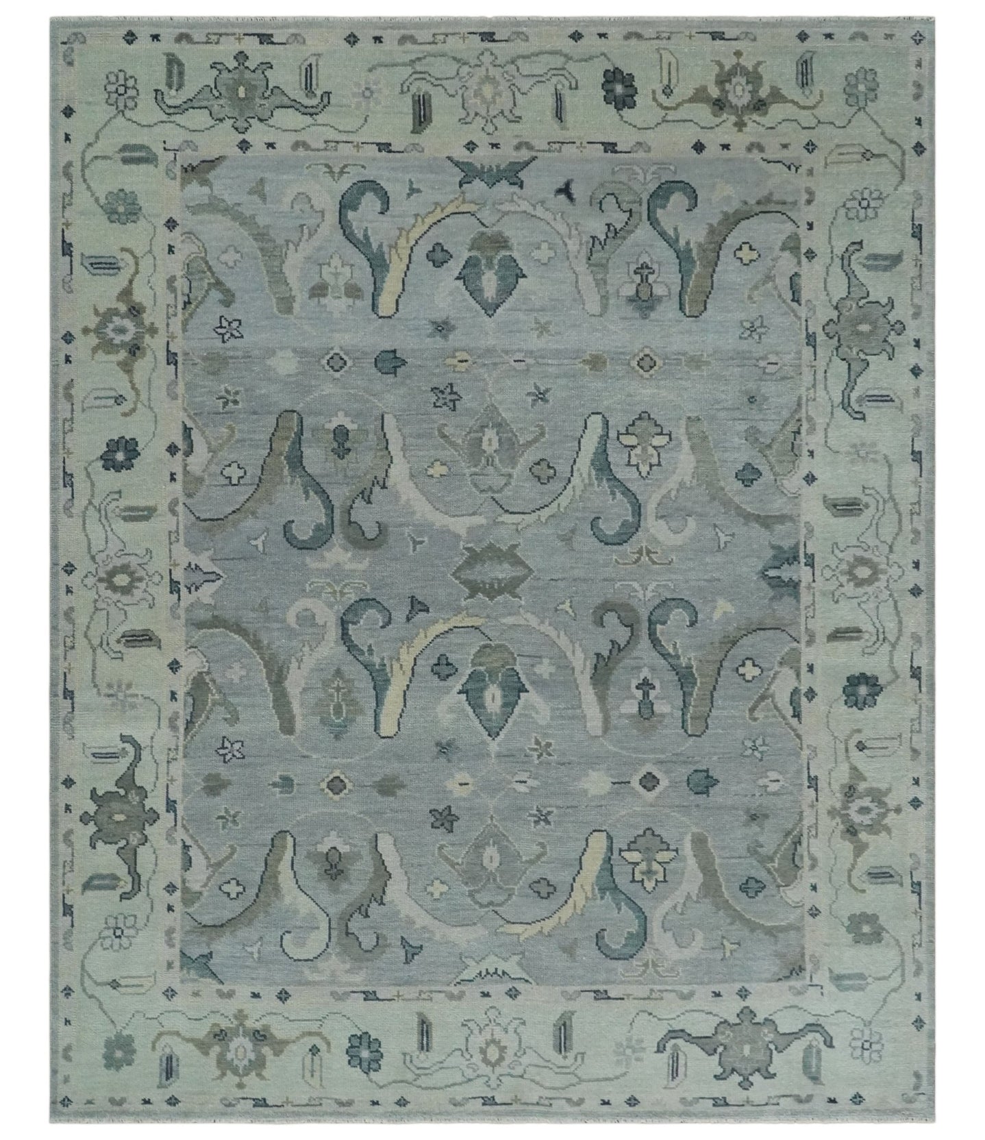 Custom Made Blue and Aqua Hand Knotted Traditional Oushak Wool Area Rug
