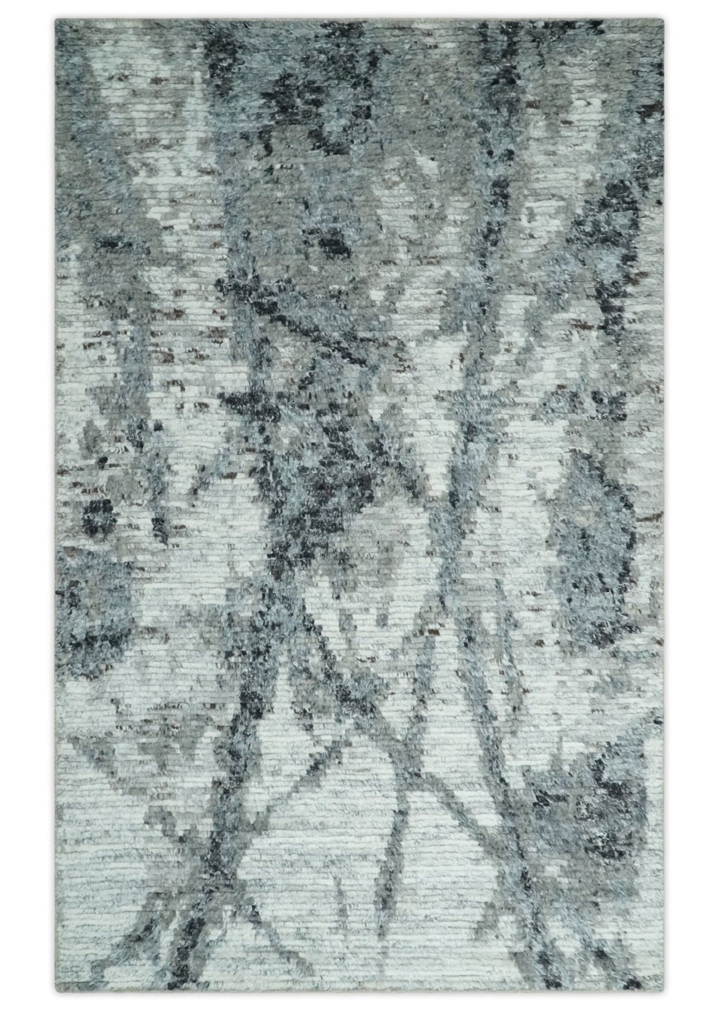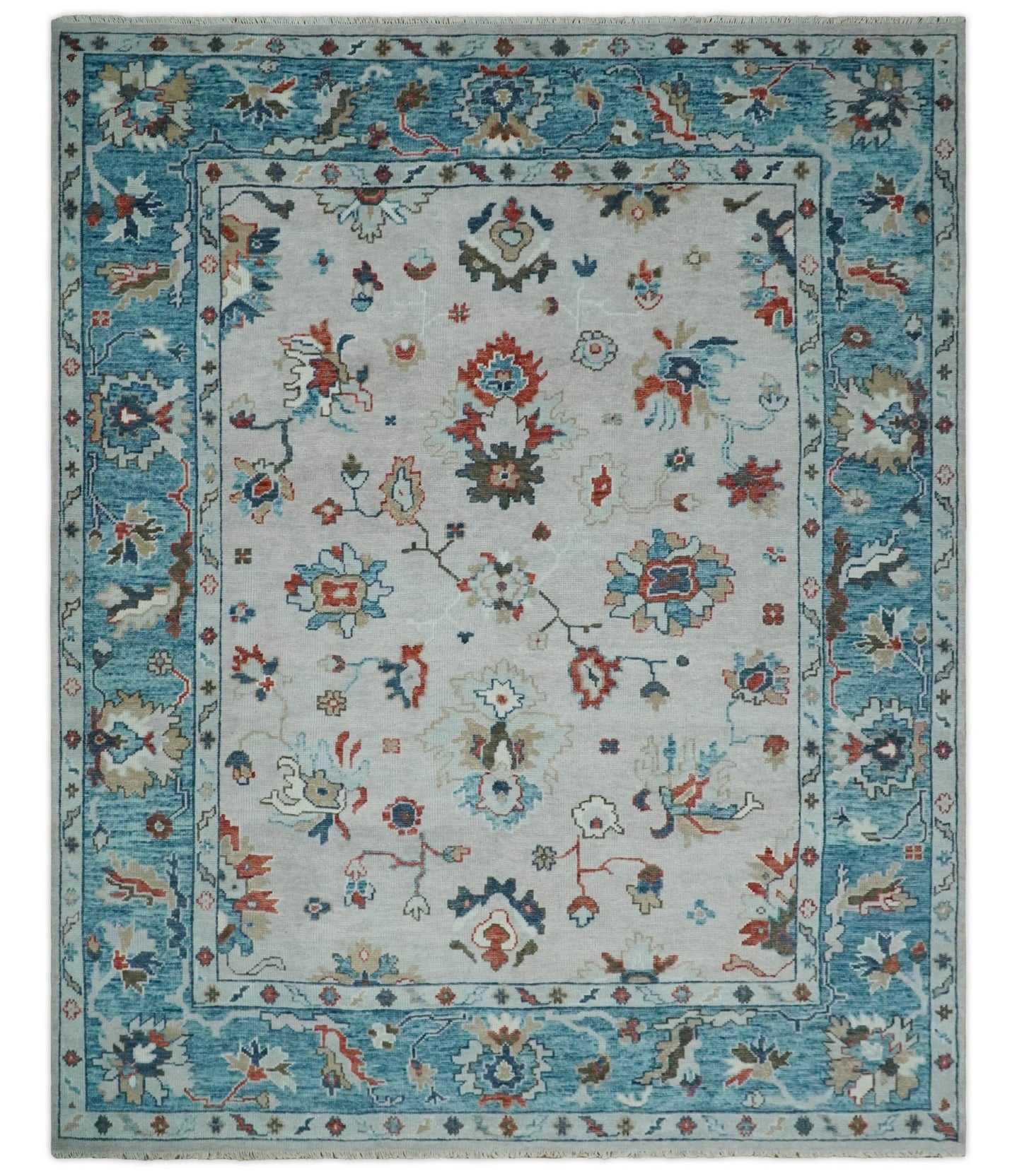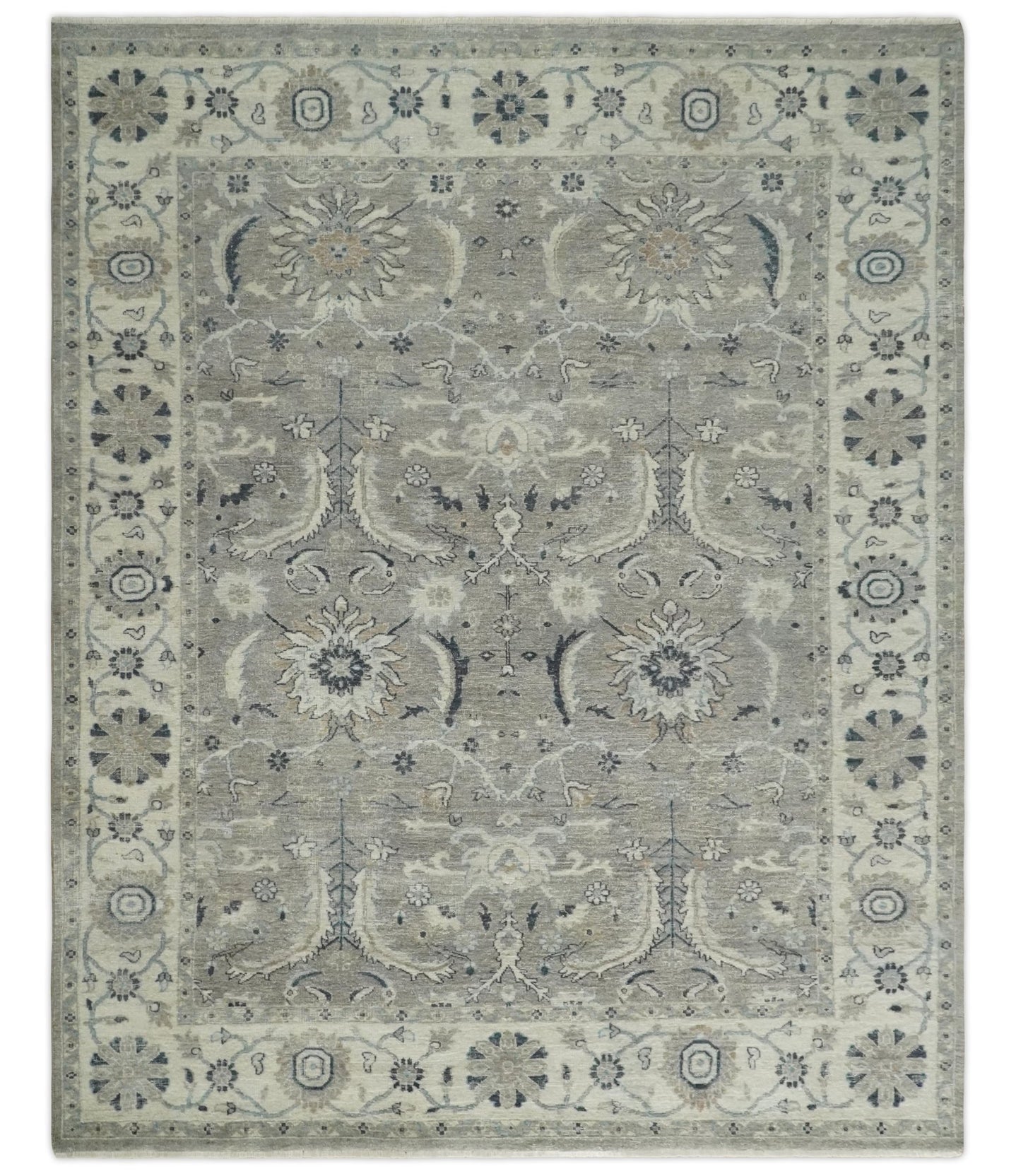 Ivory and Gray Floral Oushak Hand Knotted Custom Made Wool Area Rug