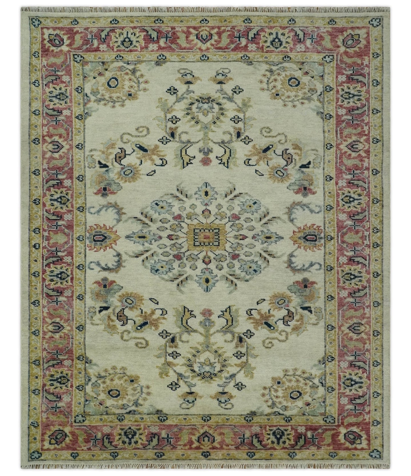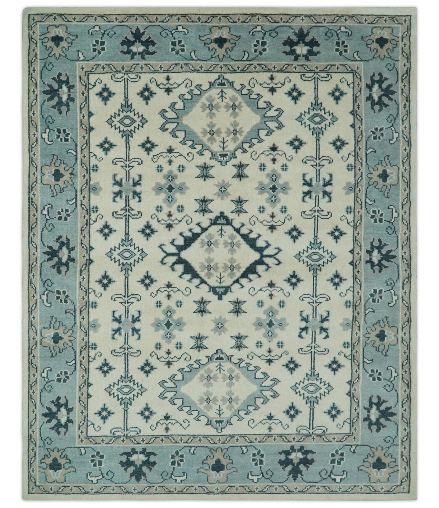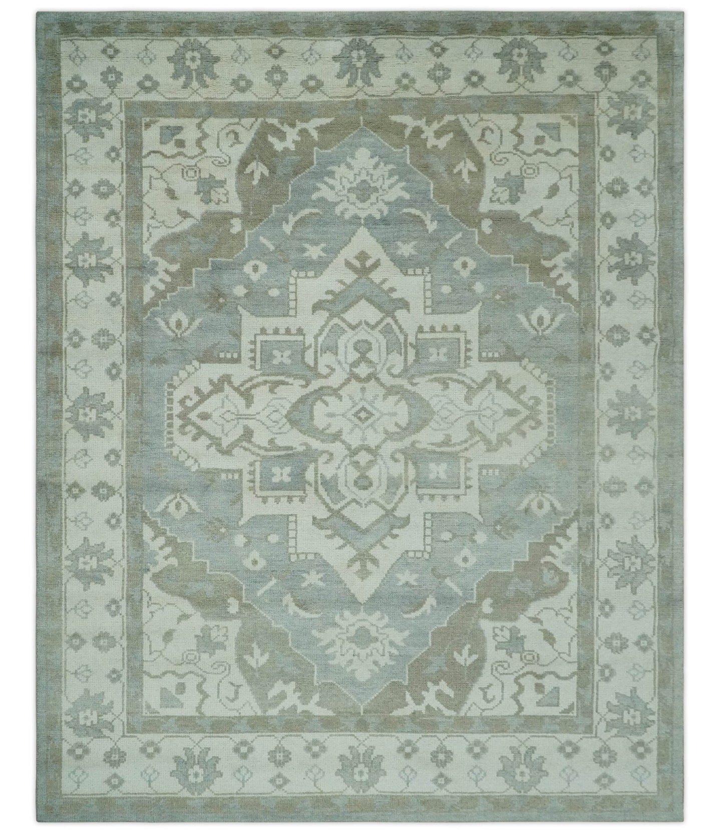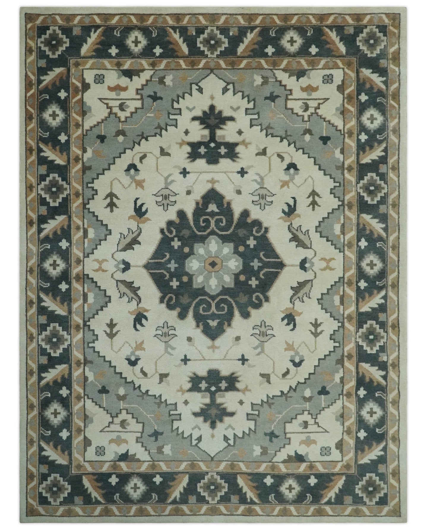 Custom Made Ivory, Gray and Camel Traditional Hand knotted Wool Area Rug