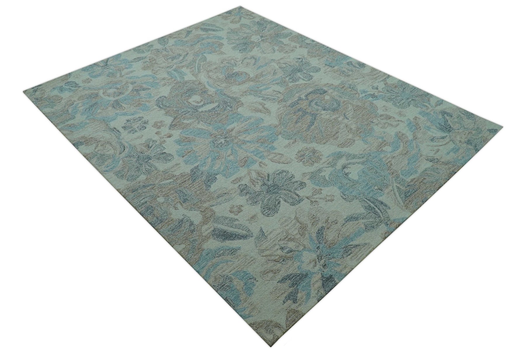 Custom Made Beige And Brown Traditional Floral Pattern Hand Tufted Wool Area Rug