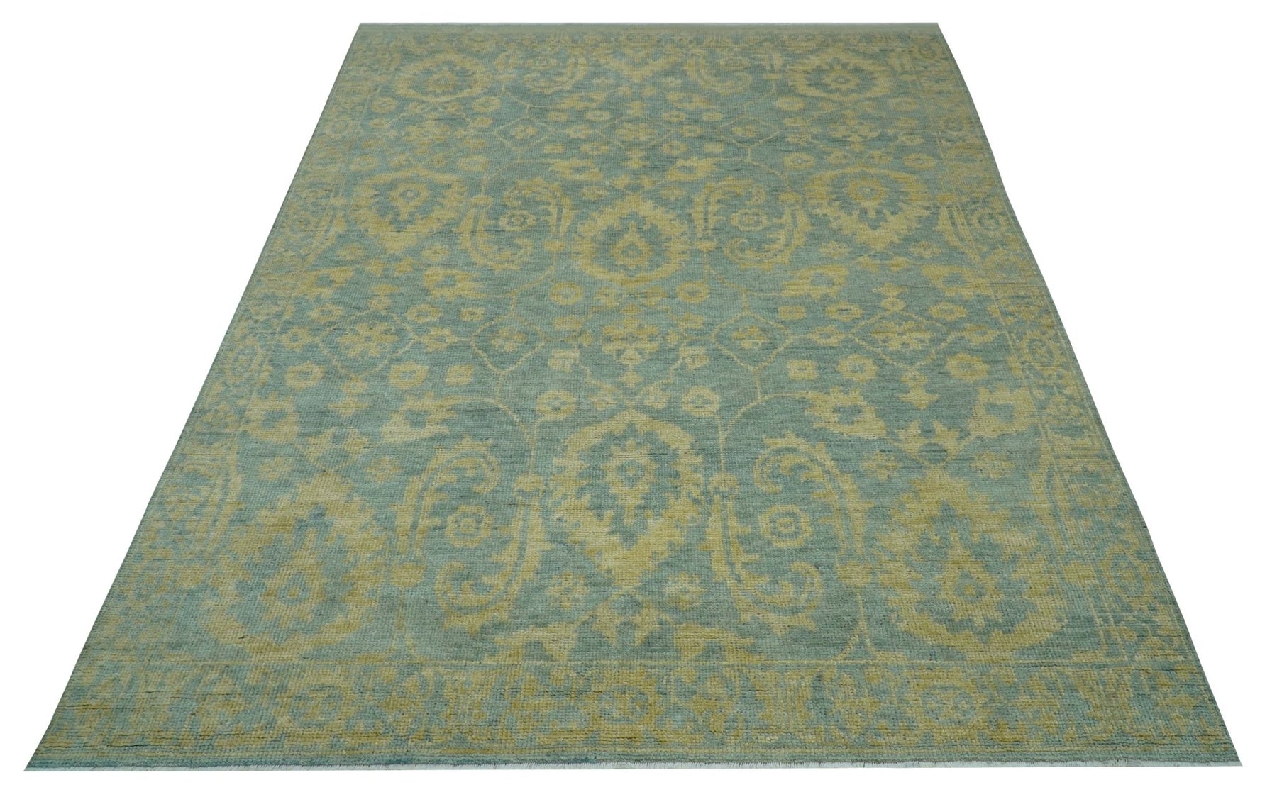Custom Made Blue And Beige Traditional Floral Hand Knotted Wool Rug