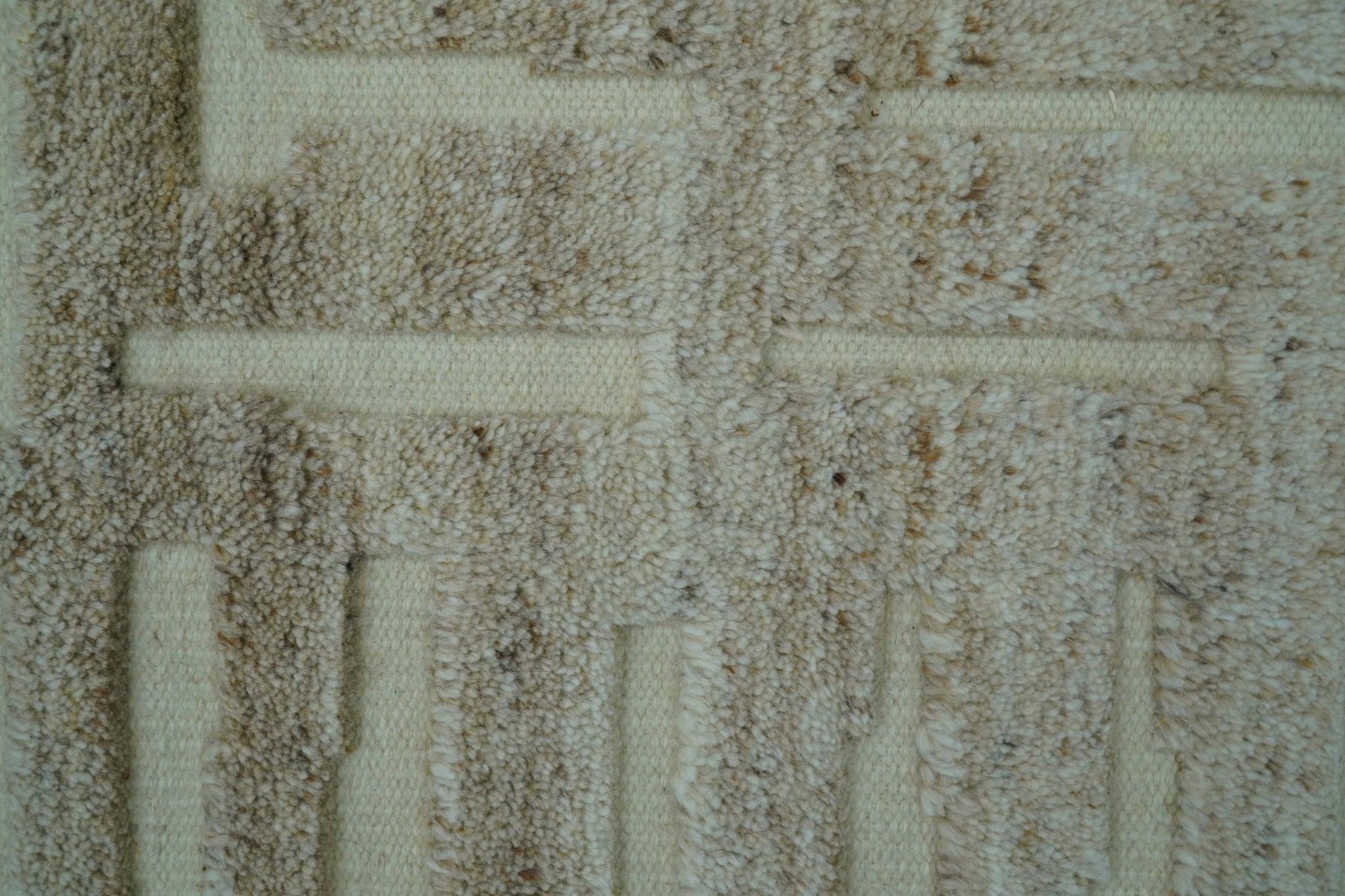 Custom-crafted hand-knotted wool area rug showcasing contemporary design in warm beige tones. Expertly woven using traditional techniques, it combines outstanding durability with understated elegance. The neutral palette adapts effortlessly to modern interiors, while superior wool quality ensures lasting performance and sophisticated visual presence for discerning homeowners seeking quality investment pieces.