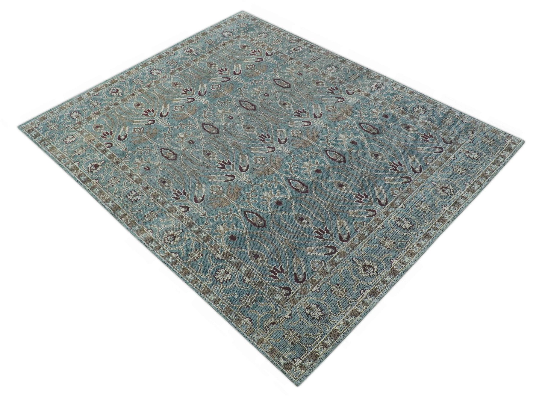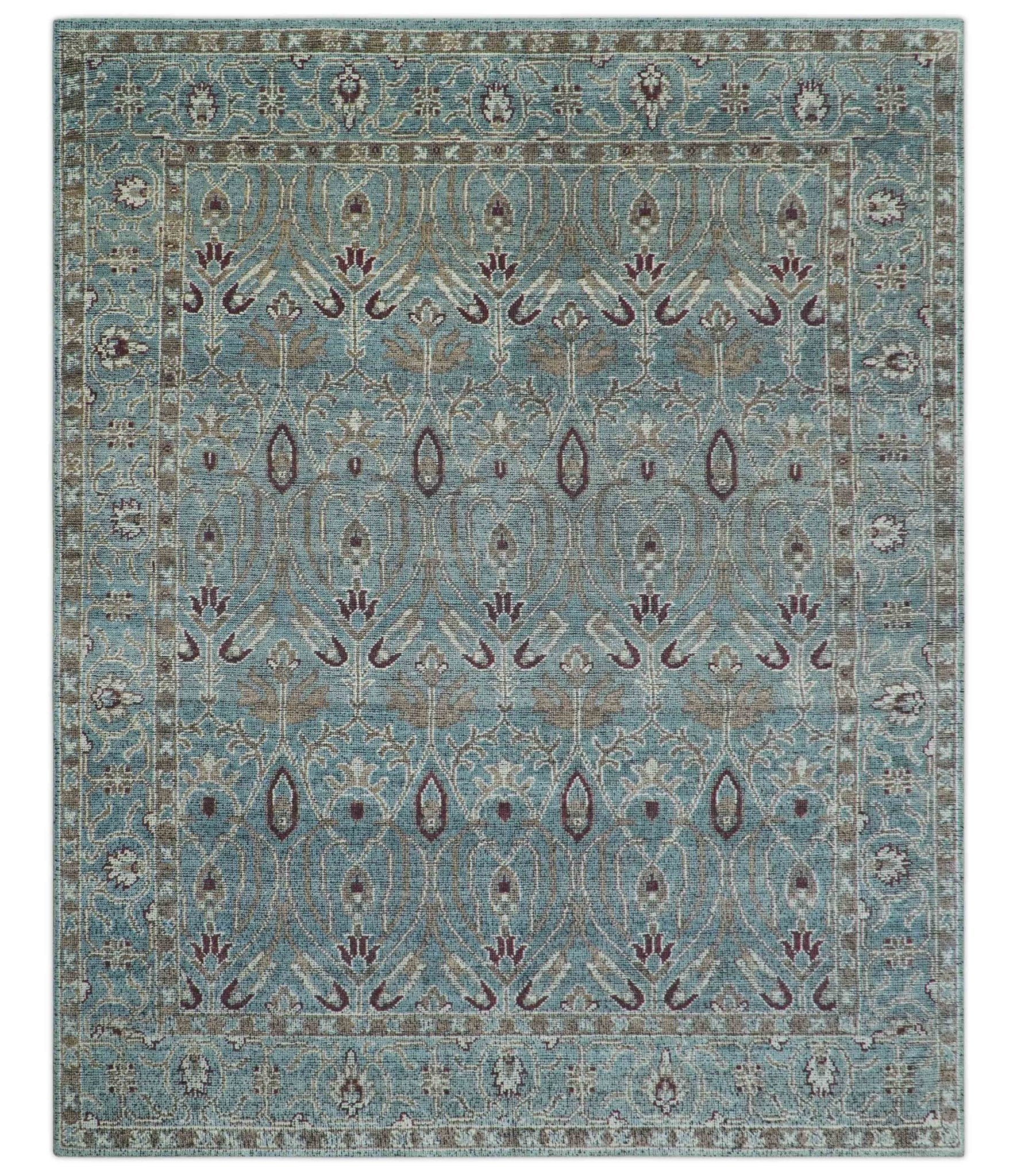 Crown Custom Made Traditional Design Blue Hand Knotted Wool Rug