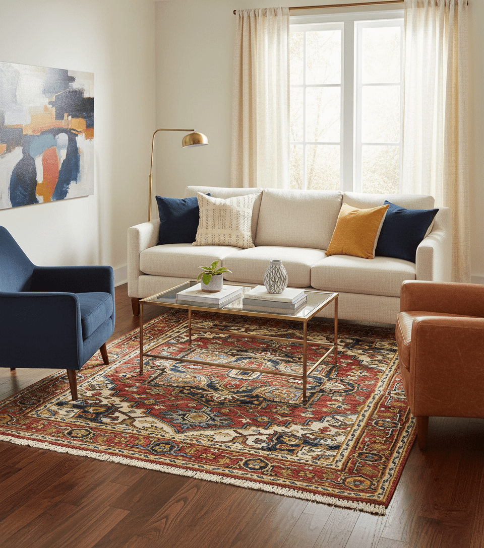 This Custom Made Traditional Heriz rug features a striking red and ivory palette, meticulously hand-knotted from premium wool. Its classic geometric design reflects authentic craftsmanship, offering exceptional durability and timeless elegance. Ideal for adding a refined, textured layer to your interior, this rug combines cultural heritage with lasting quality to enhance any living space.