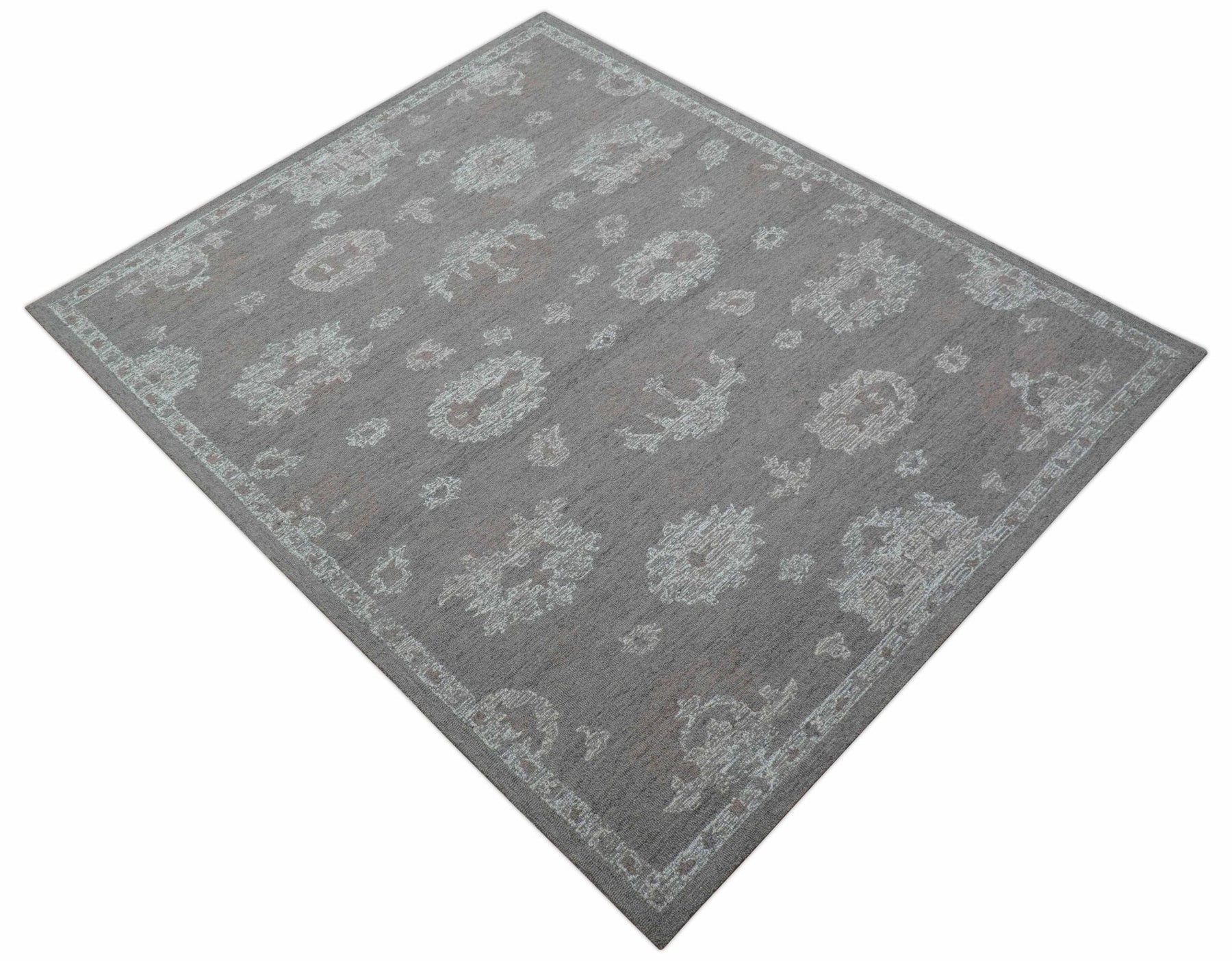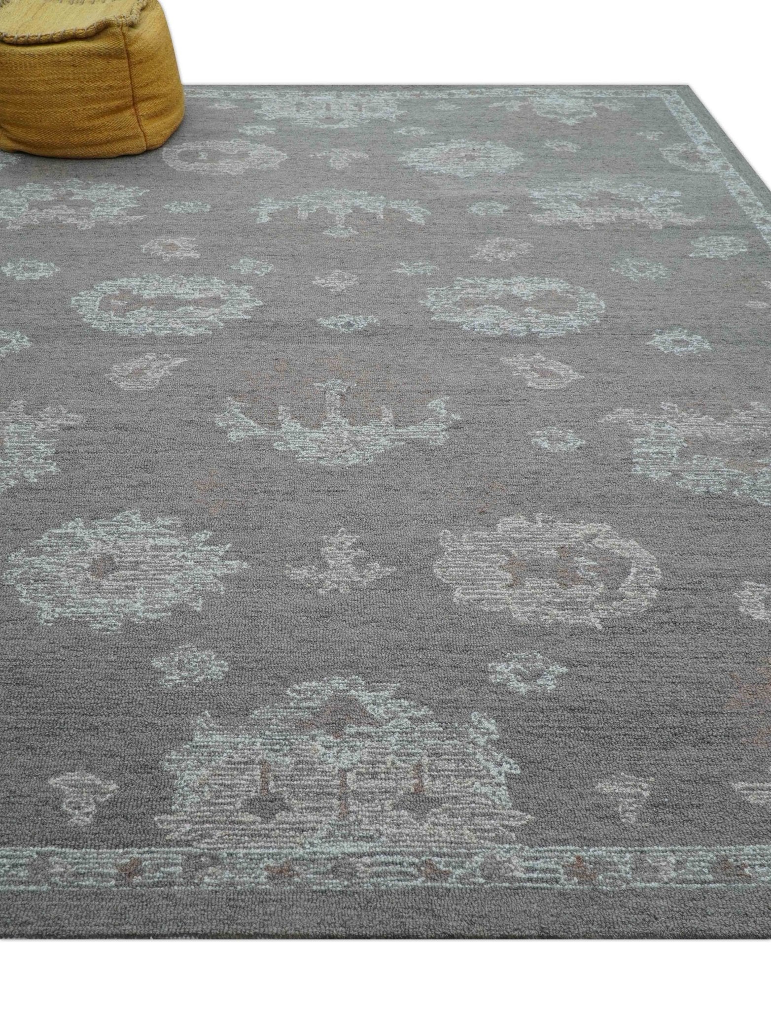 Bespoke gray Oushak wool rug created through traditional hand-tufting, made exclusively per order. This custom piece embodies authentic Turkish weaving heritage with intricate patterning, premium materials, and superior craftsmanship—an investment in timeless elegance and refined interior sophistication.