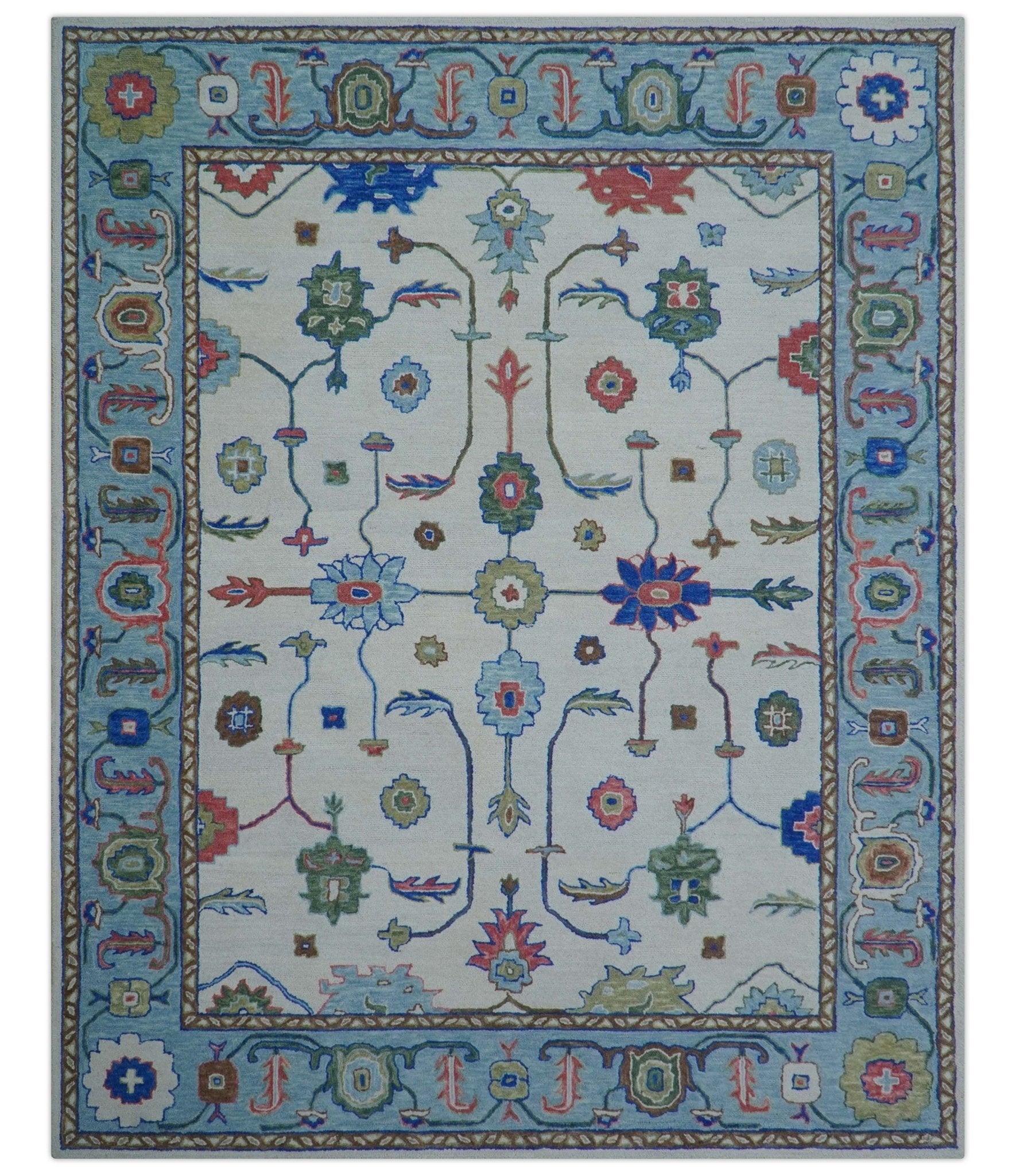 Custom Made Modern Oushak Ivory And Blue Hand Tufted Wool Area Rug