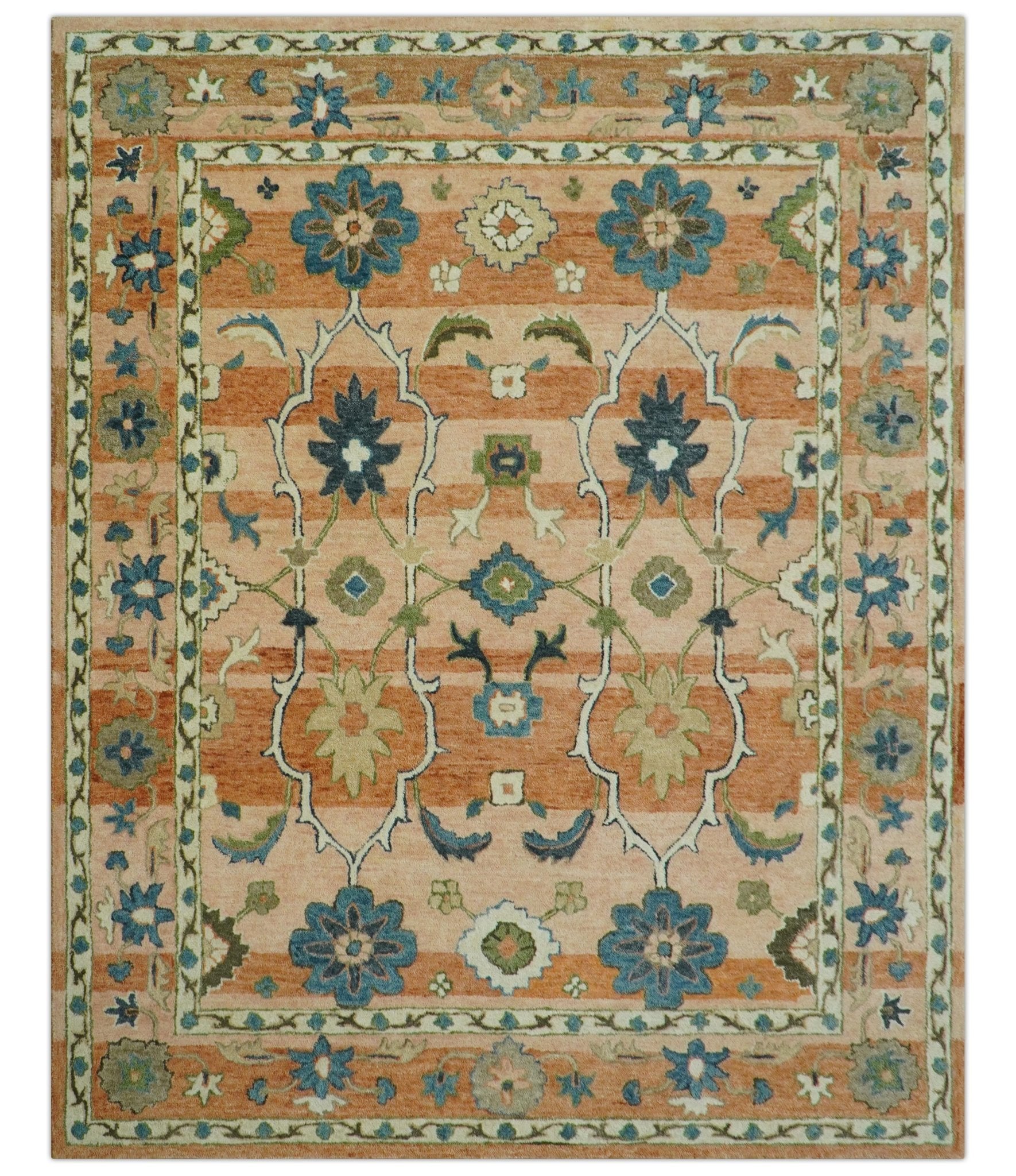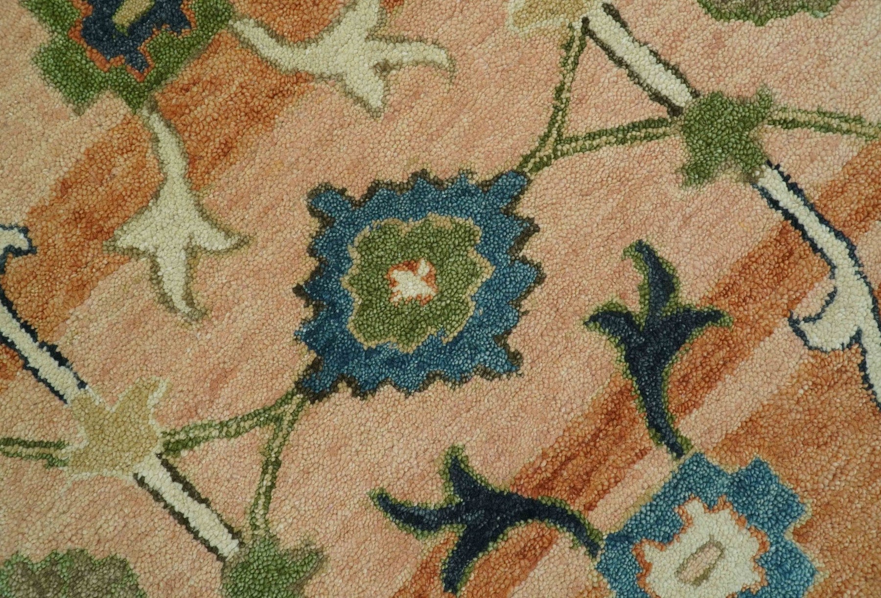 Custom Made Transitional Peach and Blue Hand Tufted Wool Area Rug