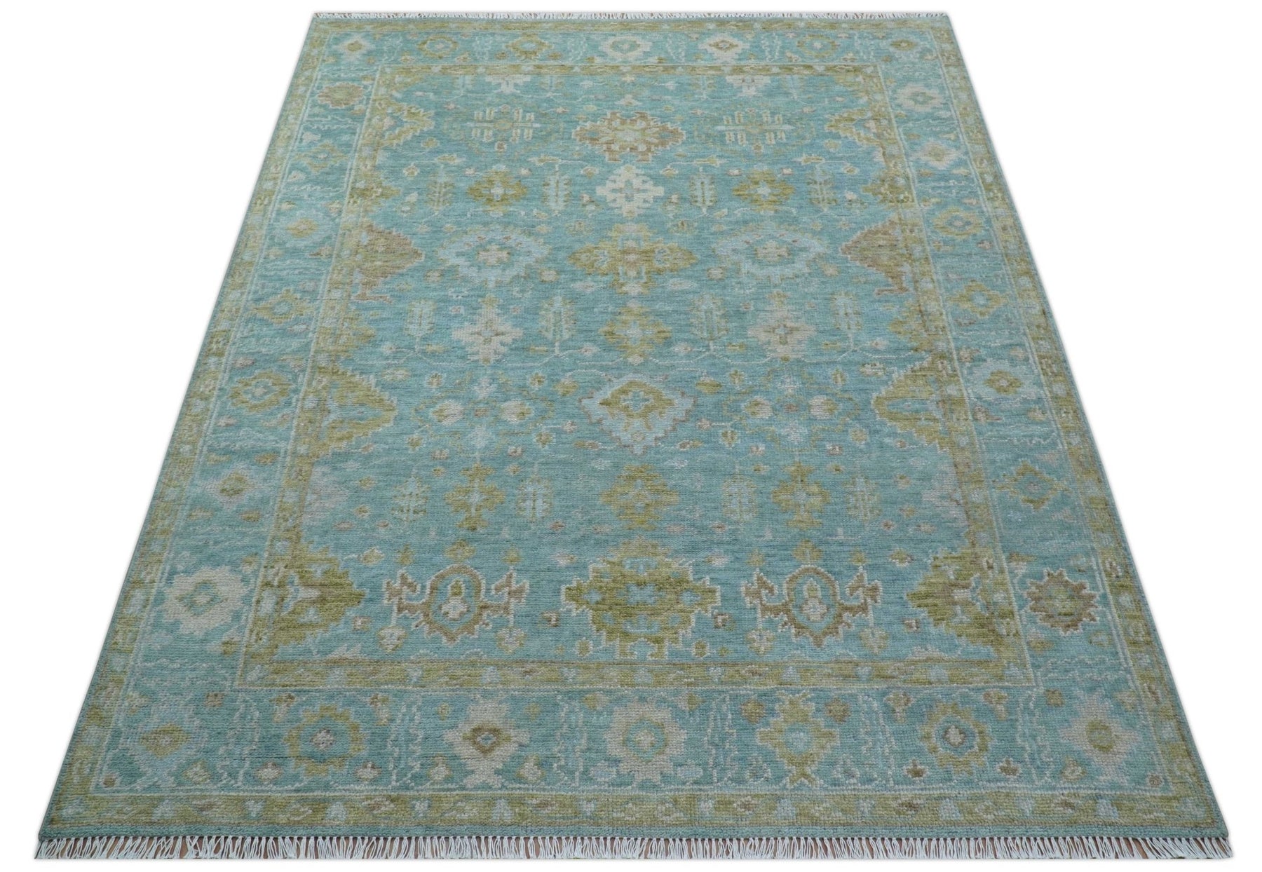 Custom Made Traditional Turkish Blue And Green Hand Knotted Wool Rug