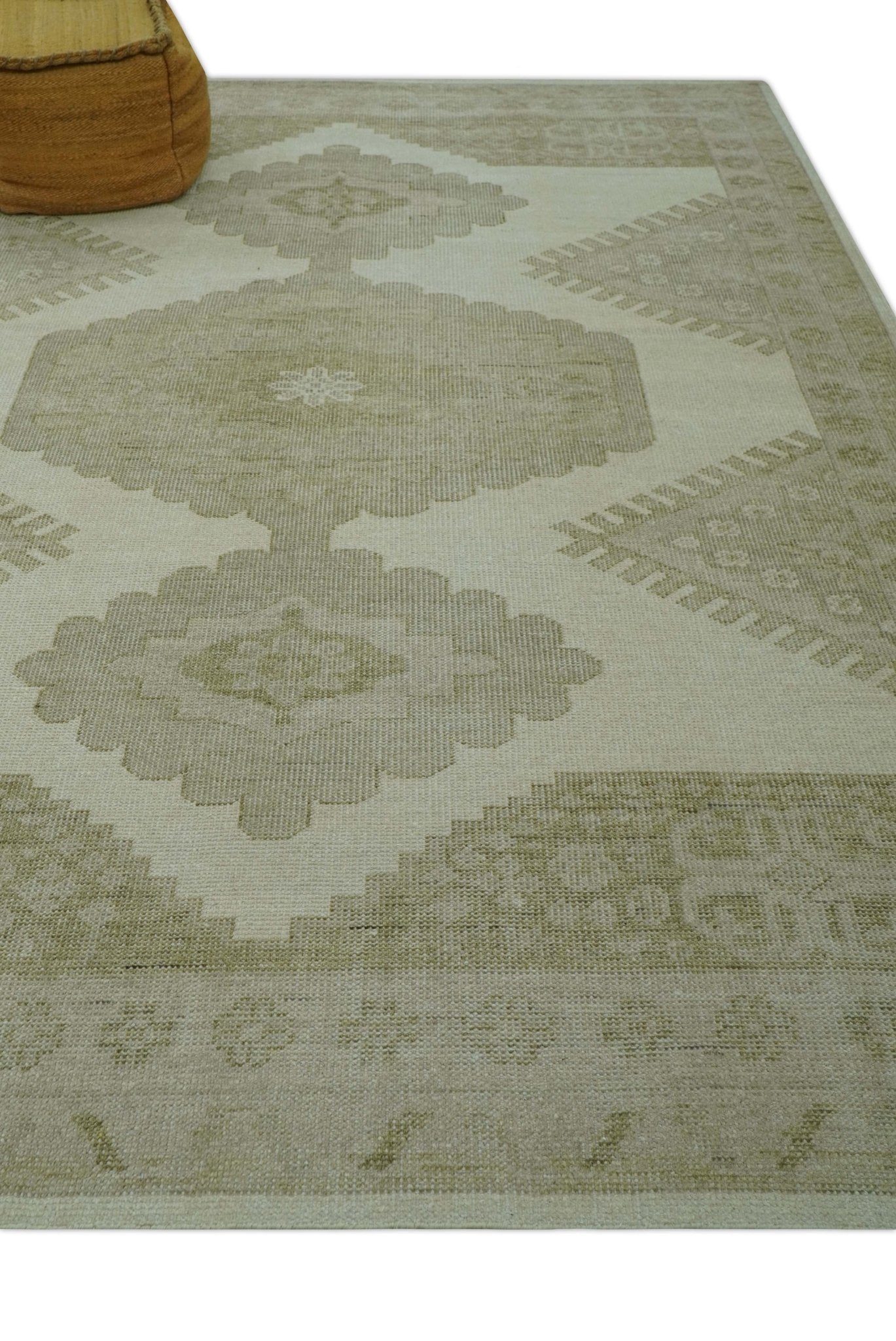 Custom Made Traditional Turkish Design Beige Hand knotted Wool Area Rug