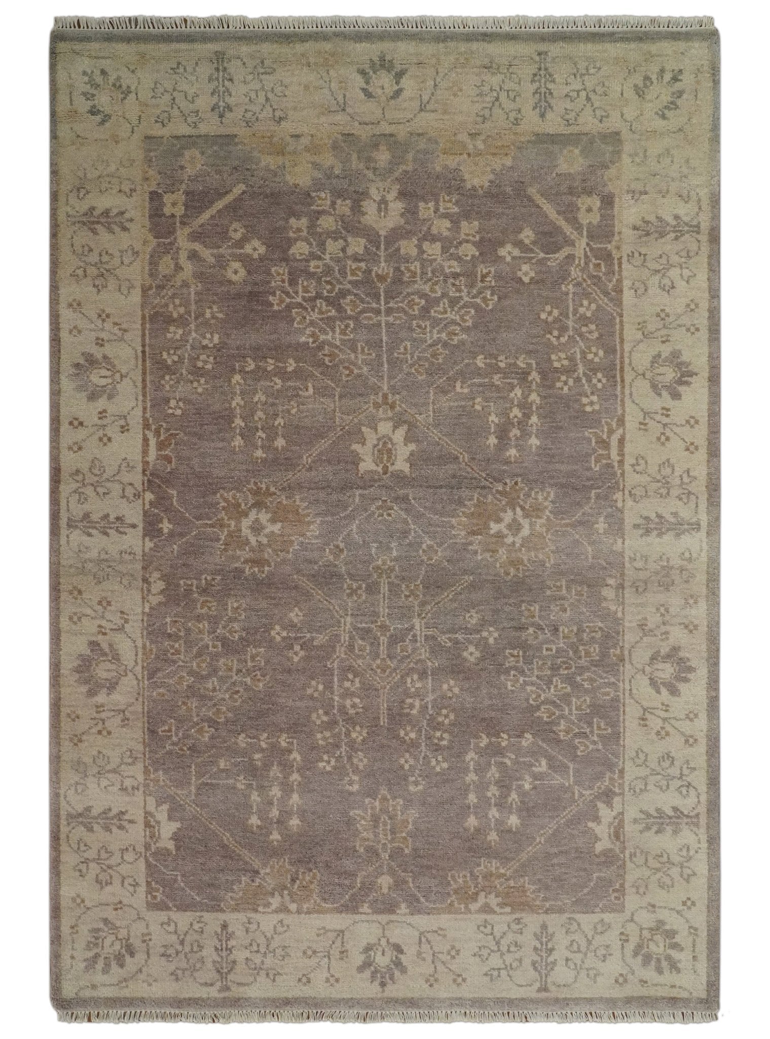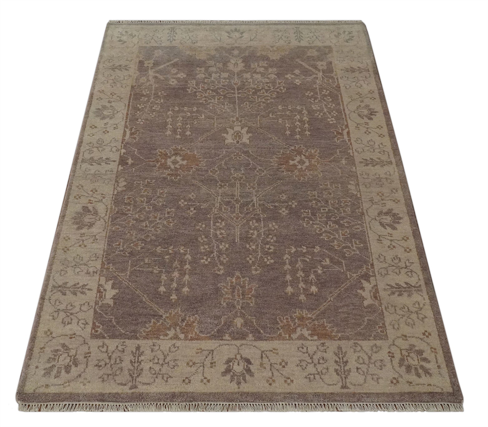 Custom Made Vintage Style Tree of life Brown And Beige Hand Knotted Wool Rug