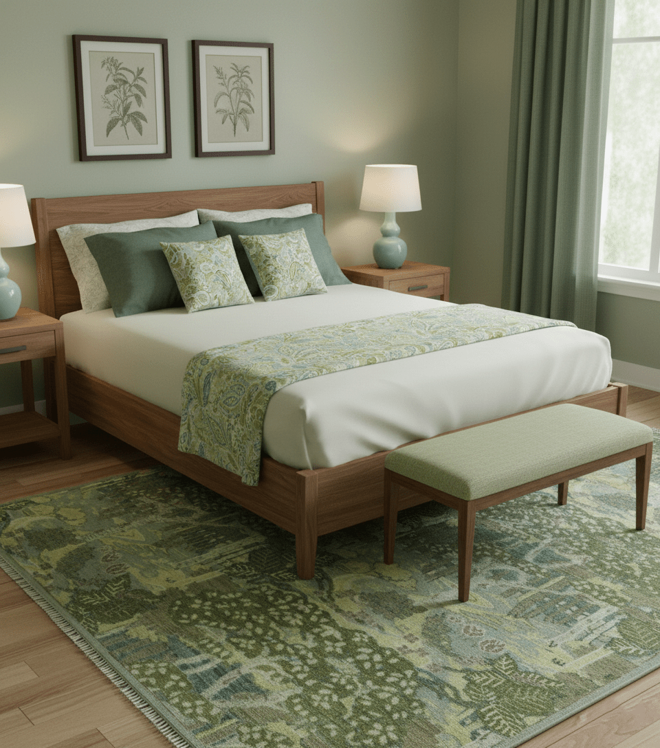 Green And Gray Nature Jungle Hand Knotted Custom Made wool area rug