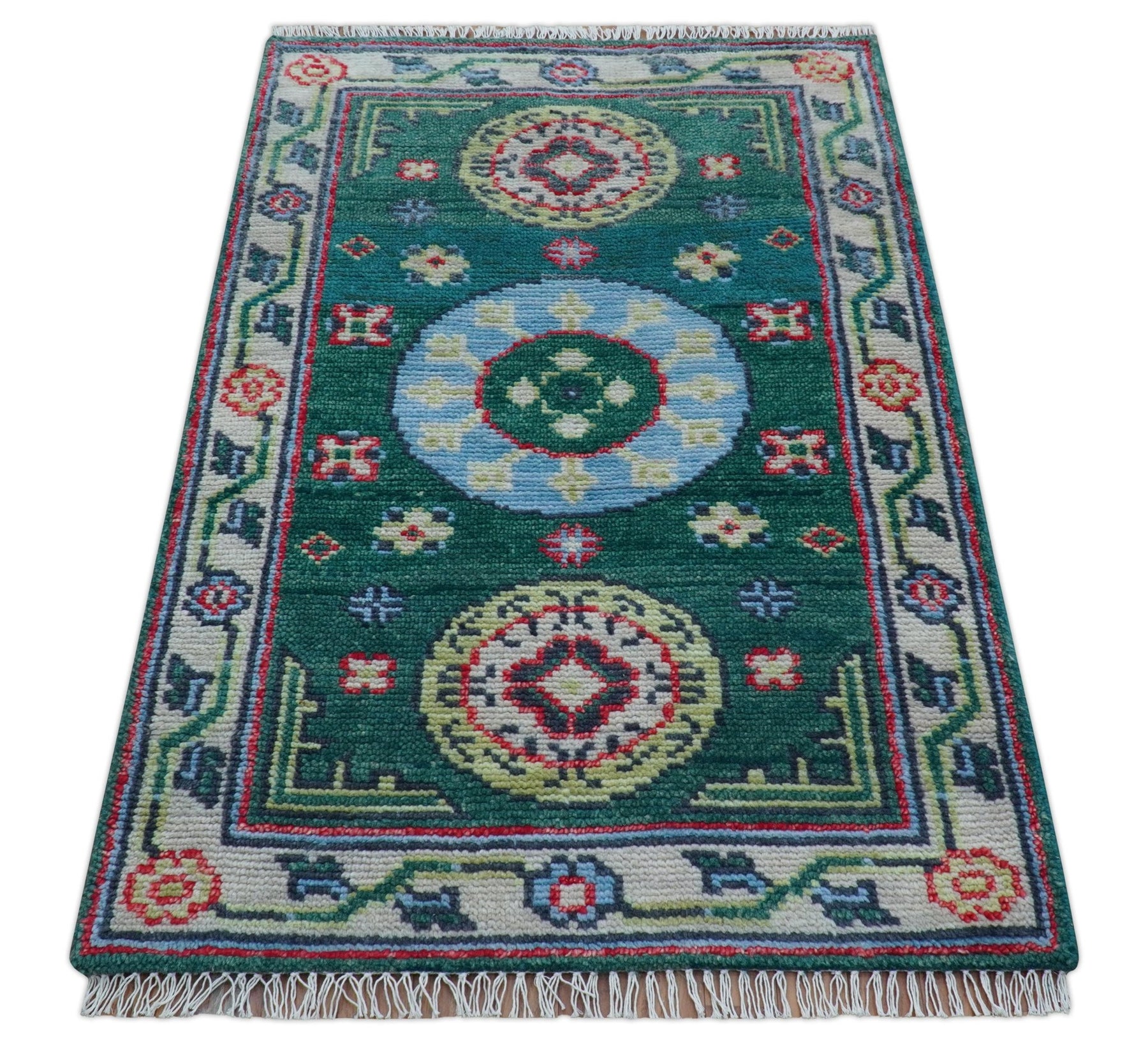 3x5 Hand knotted Traditional Khotan Design Teal Wool Area Rug