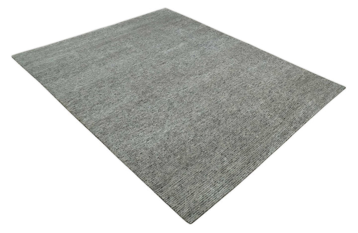 8x10 Charcoal and Silver Blended Tibetan Wool and Silk Area Rug