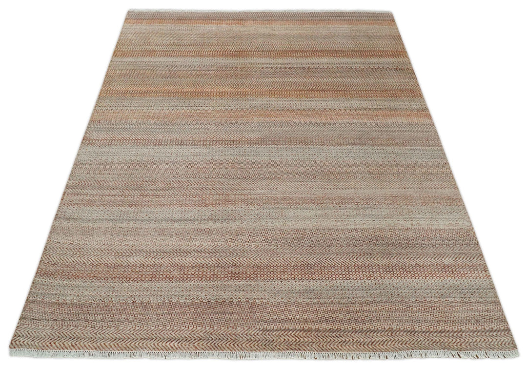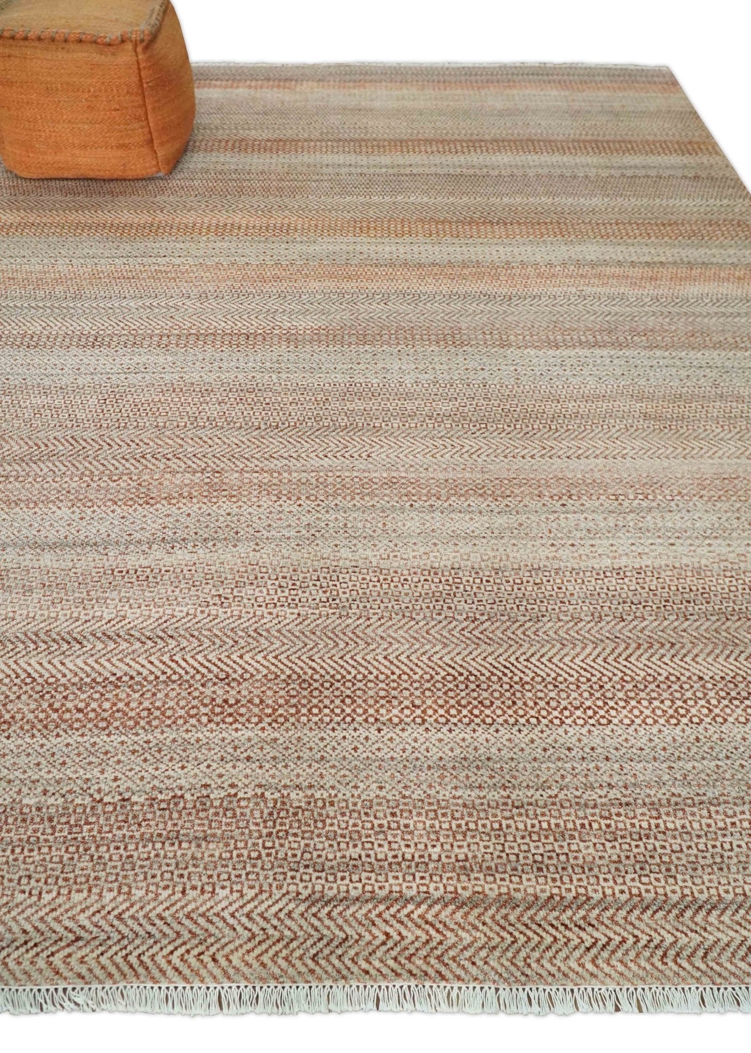 Modern Geometric Trellis Scandinavian Hand Knotted 8x10 Rust, Ivory and Gray Wool Area Rug | TRDCP940810