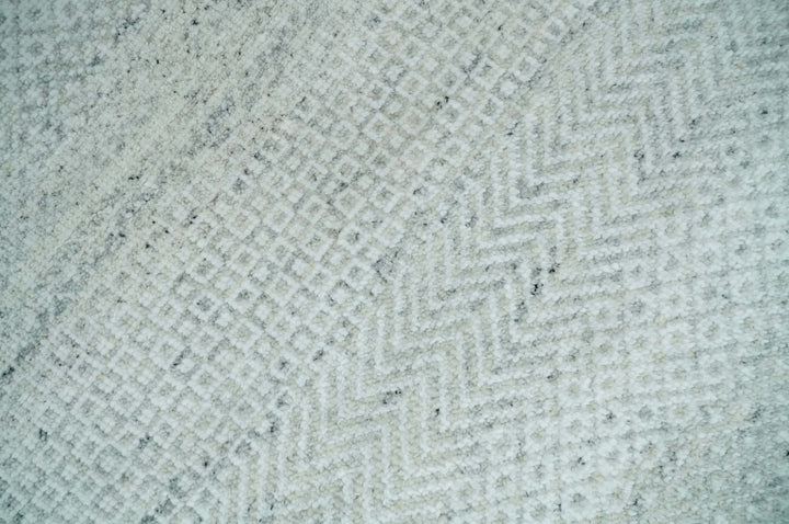 Modern Geometric Trellis Scandinavian 8x10 Hand Knotted Silver, Ivory and Gray Wool Area Rug | TRDCP955810