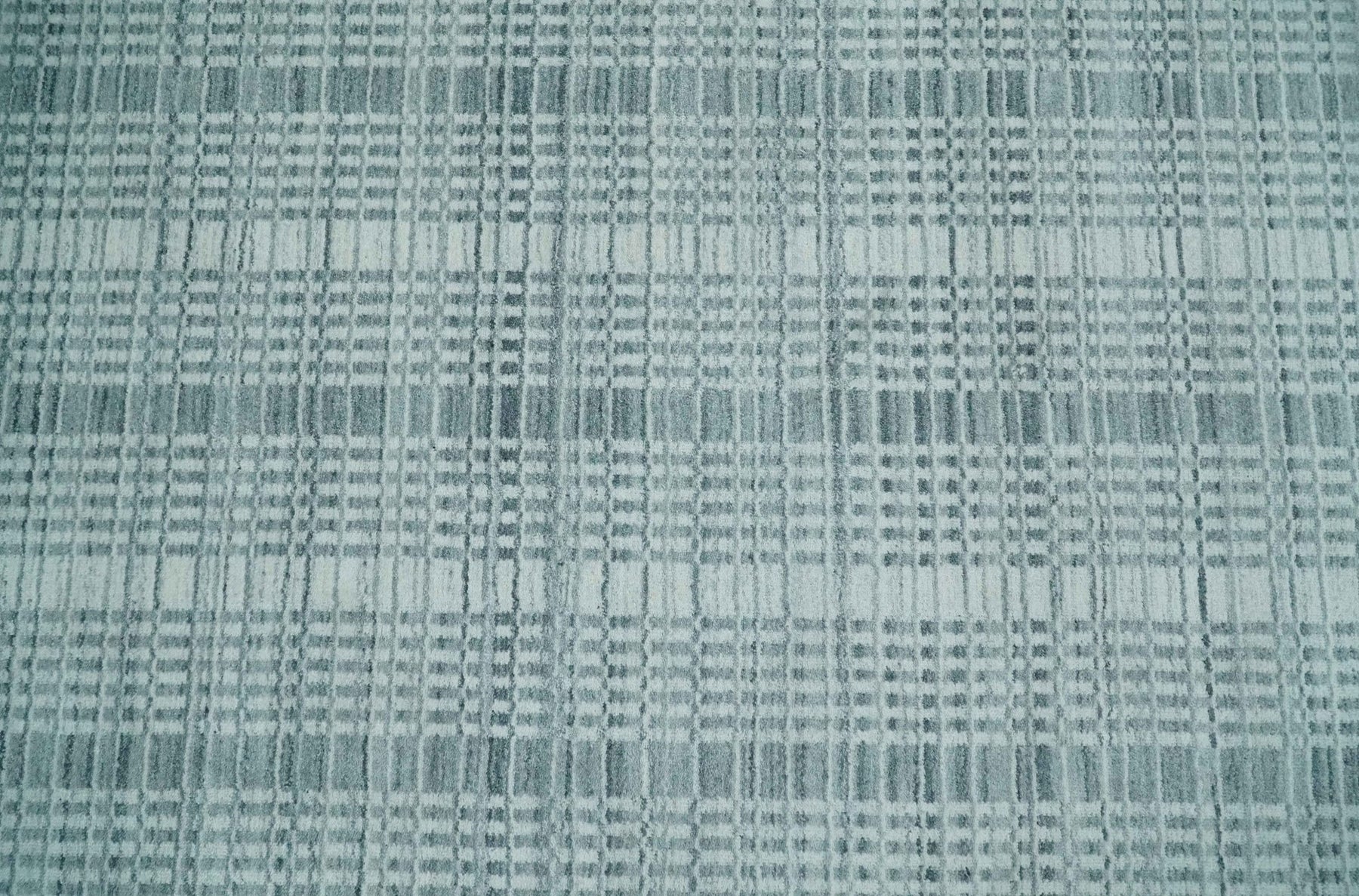 Modern 8x10 Hand Made striped Ivory, silver and Gray Scandinavian Blended Wool Flatwoven Area Rug | KE2