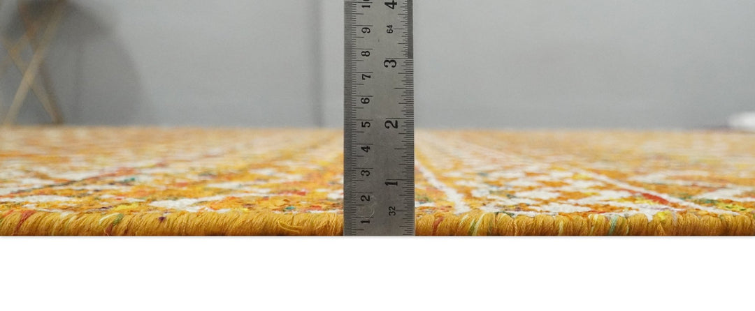 9x12 Hand Knotted Gold and White Modern Contemporary Southwestern Tribal Trellis Recycled Silk Area Rug | OP16