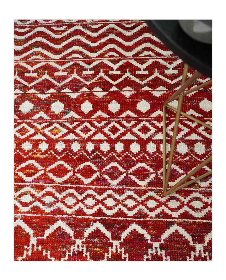 4x6 and 9x12 Hand Knotted Rust and White Modern Contemporary Southwestern Tribal Trellis Recycled Silk Area Rug | OP7