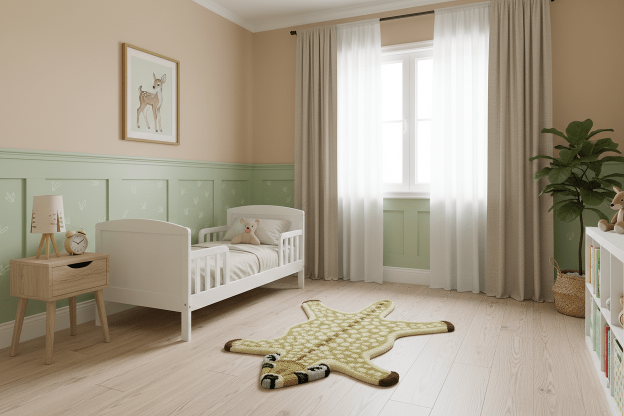 This hand-tufted wool area rug showcases an authentic giraffe design in warm brown hues, bringing curated elegance to intimate spaces. At 2x3 feet, it enhances nurseries, dens, and entryways with artistic character. Made from premium wool, this piece delivers exceptional durability and natural stain resistance while preserving its rich coloration and textured surface quality throughout years of use.