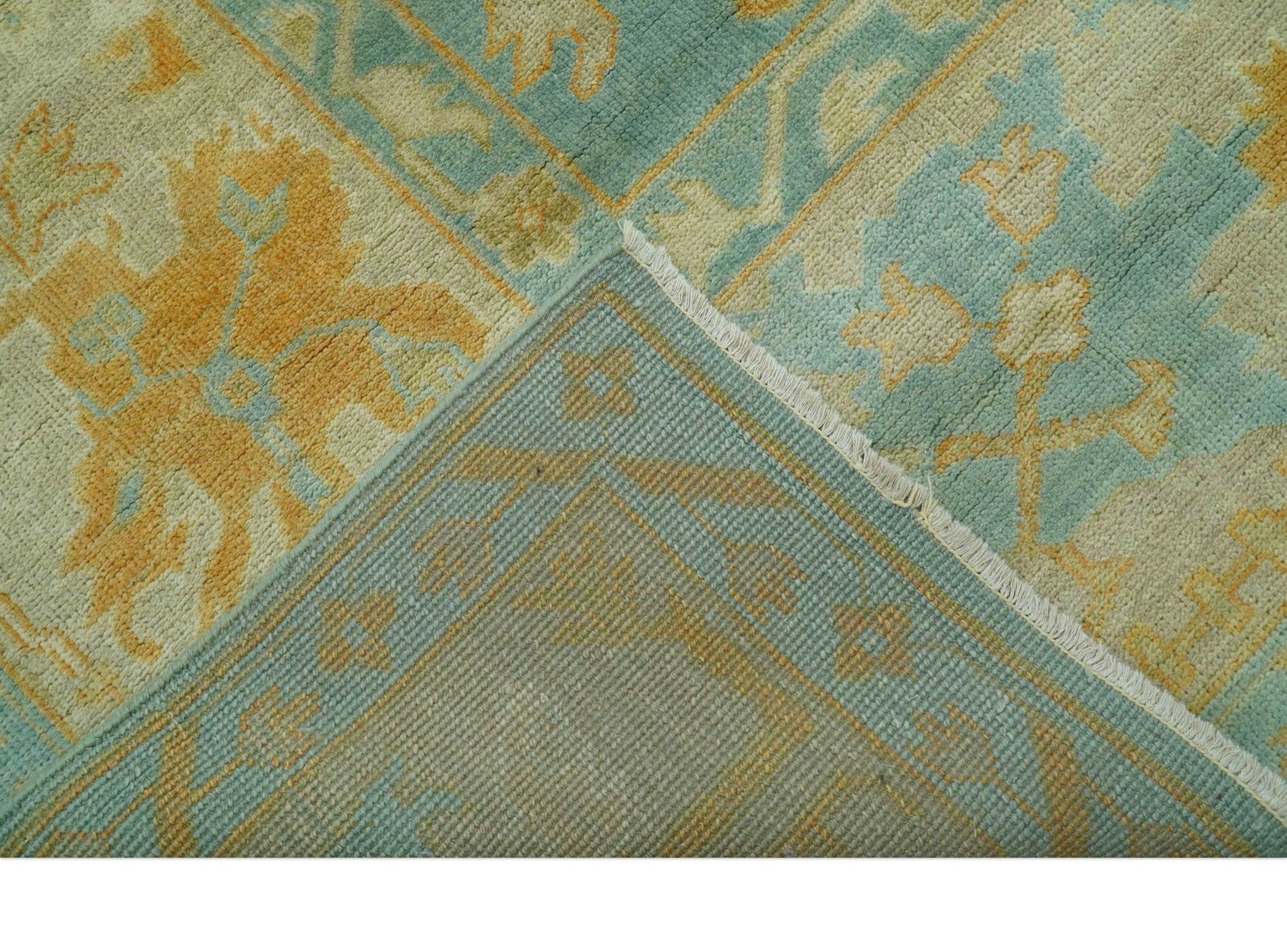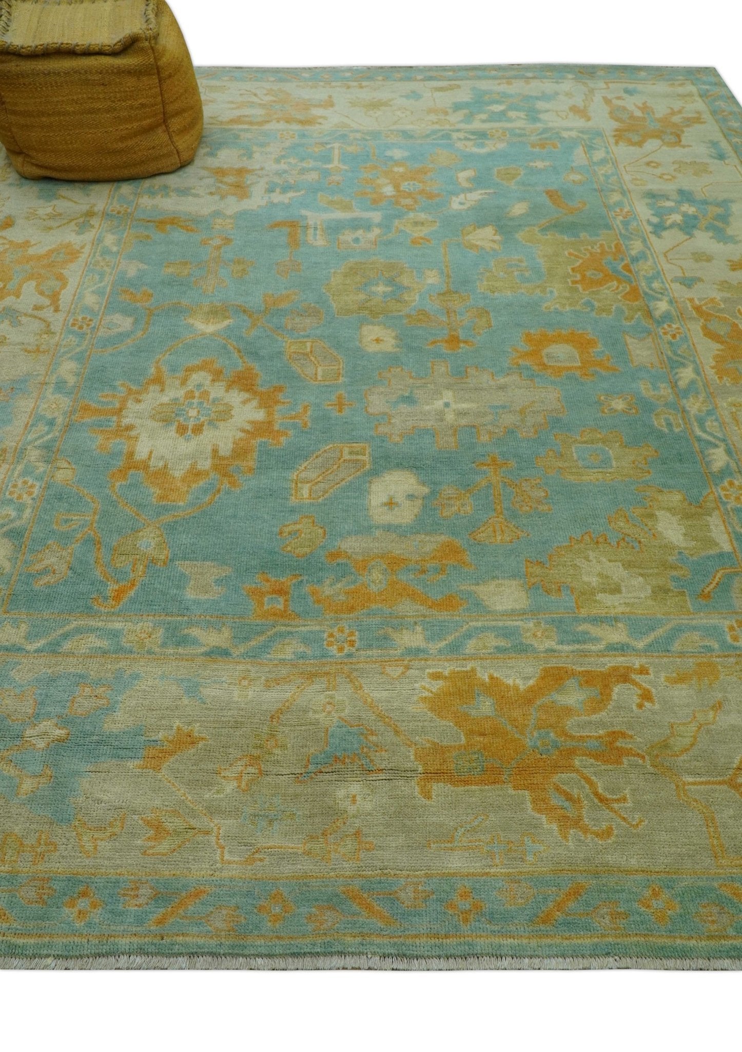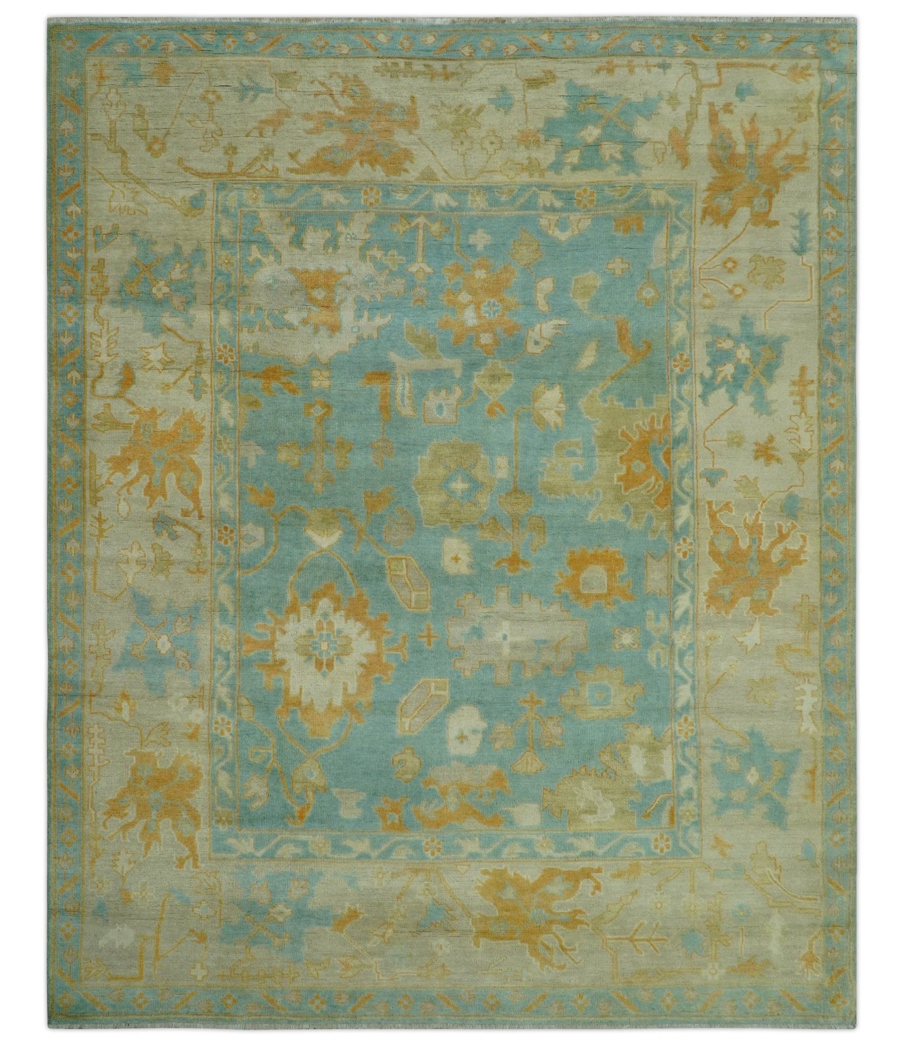 Beige And Blue Traditional 8x10 Hand Knotted Wool Area Rug