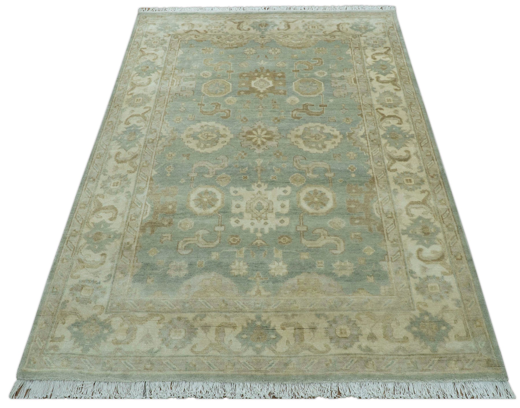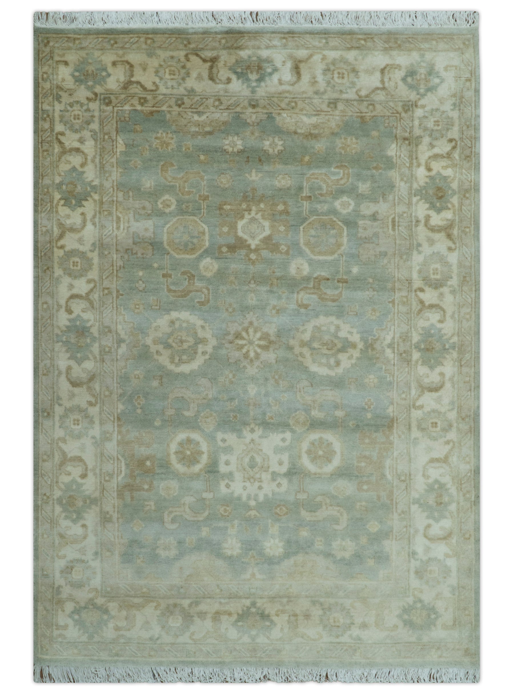 Beige And Blue Traditional Oushak Design 6x9 Hand Knotted Wool Area Rug