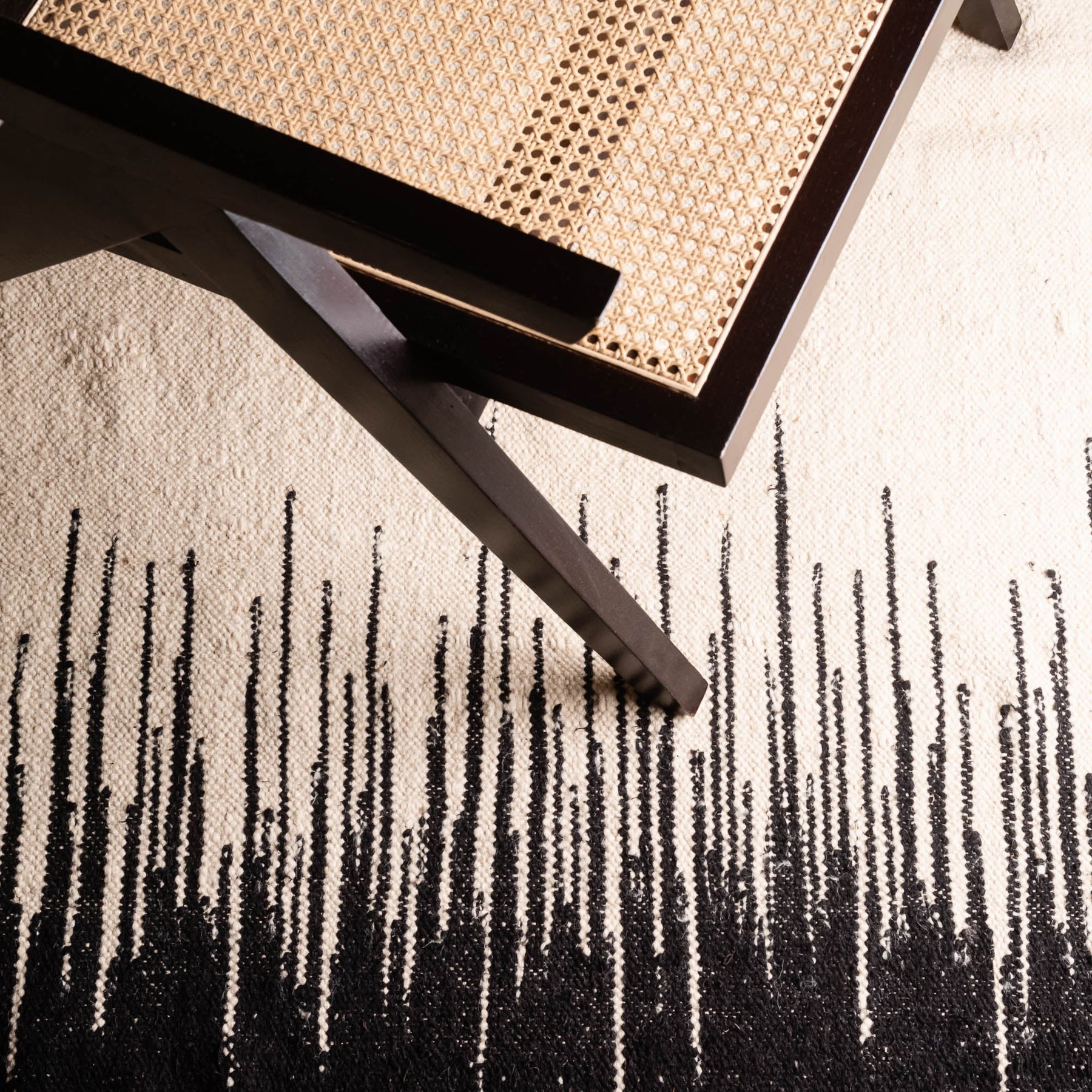 This hand-knotted wool rug blends contemporary design with Moroccan heritage, featuring striking black and beige tones. The 6.7x10 dimensions make it ideal for living rooms or bedrooms. Crafted from premium wool, it offers durability and natural softness underfoot while adding sophisticated texture and visual interest to any space.