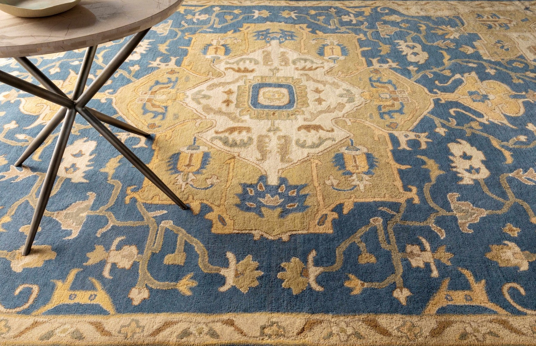 This hand-tufted wool rug showcases timeless traditional design with a refined blue and beige palette. Constructed using premium wool for superior resilience and softness, it brings sophisticated character to living spaces while delivering enduring performance and aesthetic refinement.