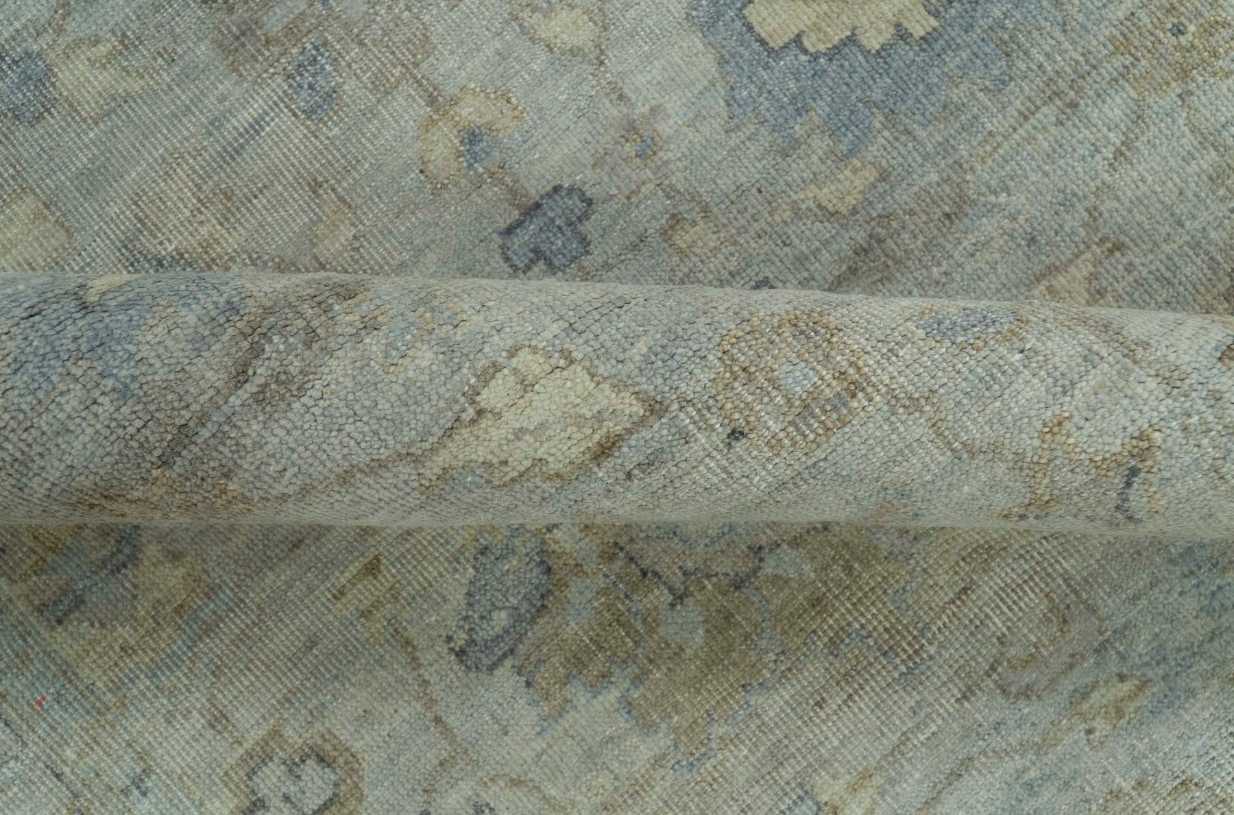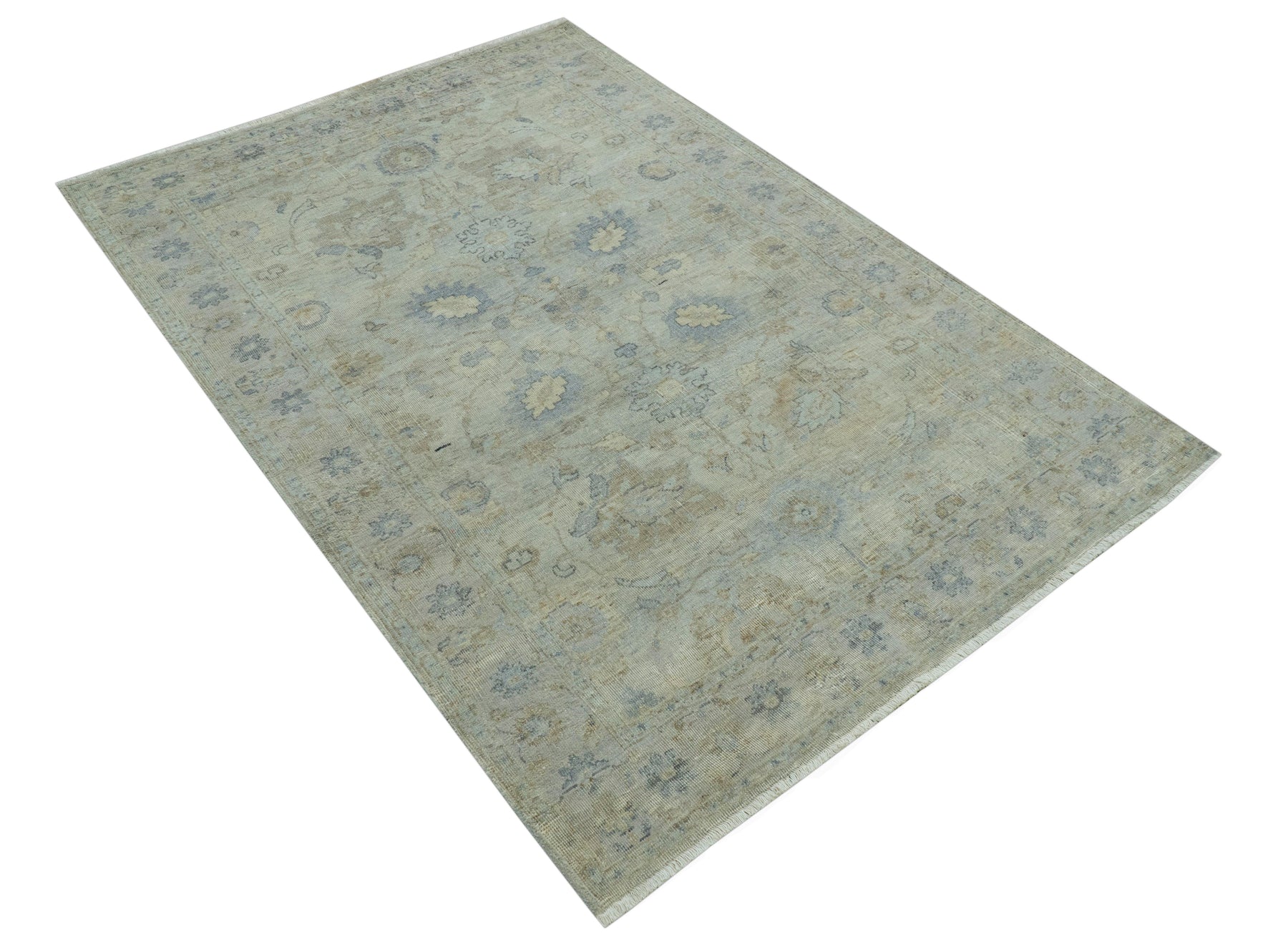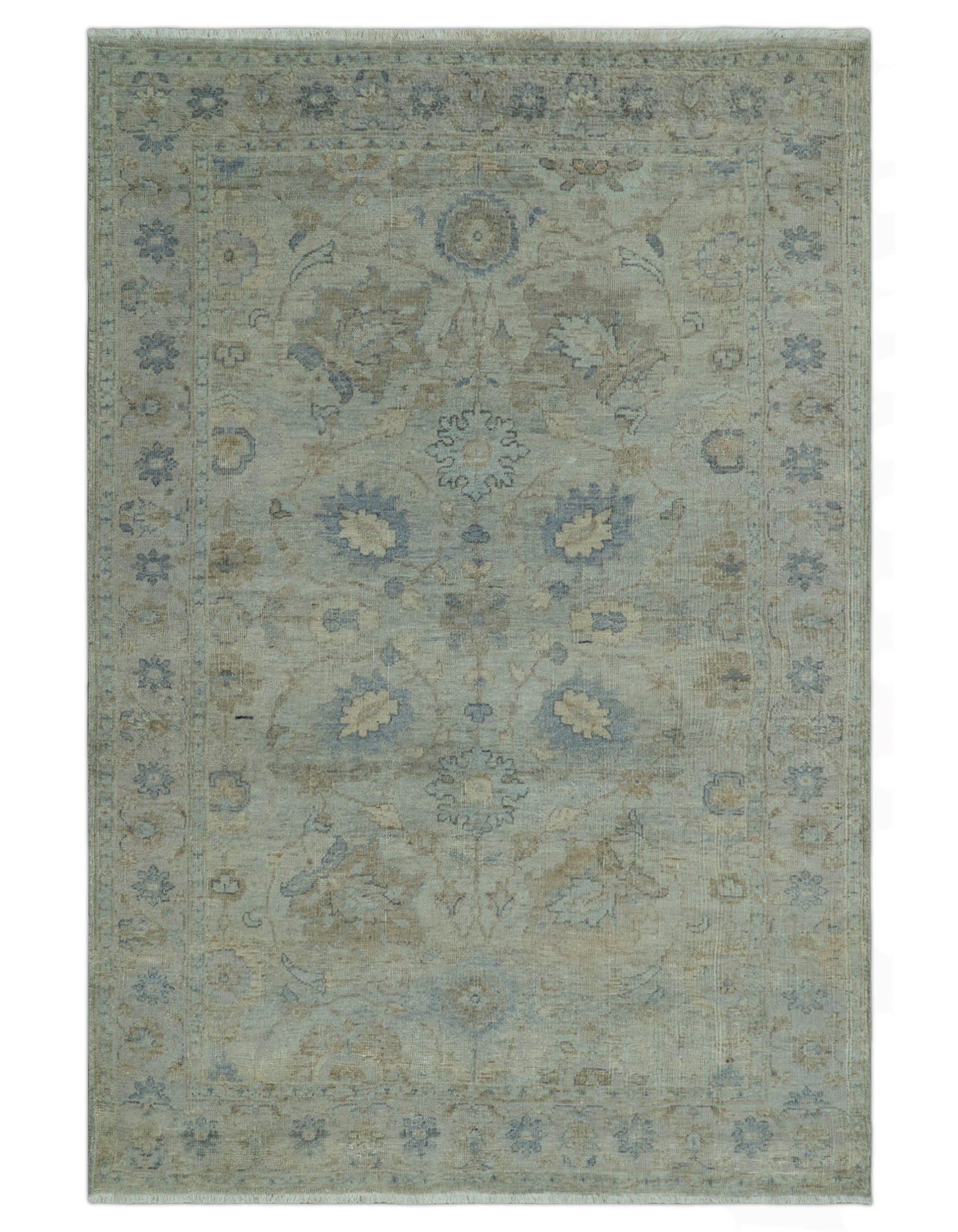 Exquisitely crafted with traditional Turkish Oushak design elements, this 4'x5'6" hand-knotted wool rug features a harmonious blend of blue and beige hues. The meticulous hand-knotting technique ensures exceptional durability and texture, while the premium wool fibers provide natural resilience and warmth. Each rug represents centuries of artisanal expertise, offering both authentic cultural heritage and sophisticated elegance for discerning interior spaces.